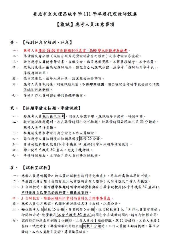 有關本校7/12(二)辦理教師甄選複試,複試規則說明如附件,請考生留意相關規定。