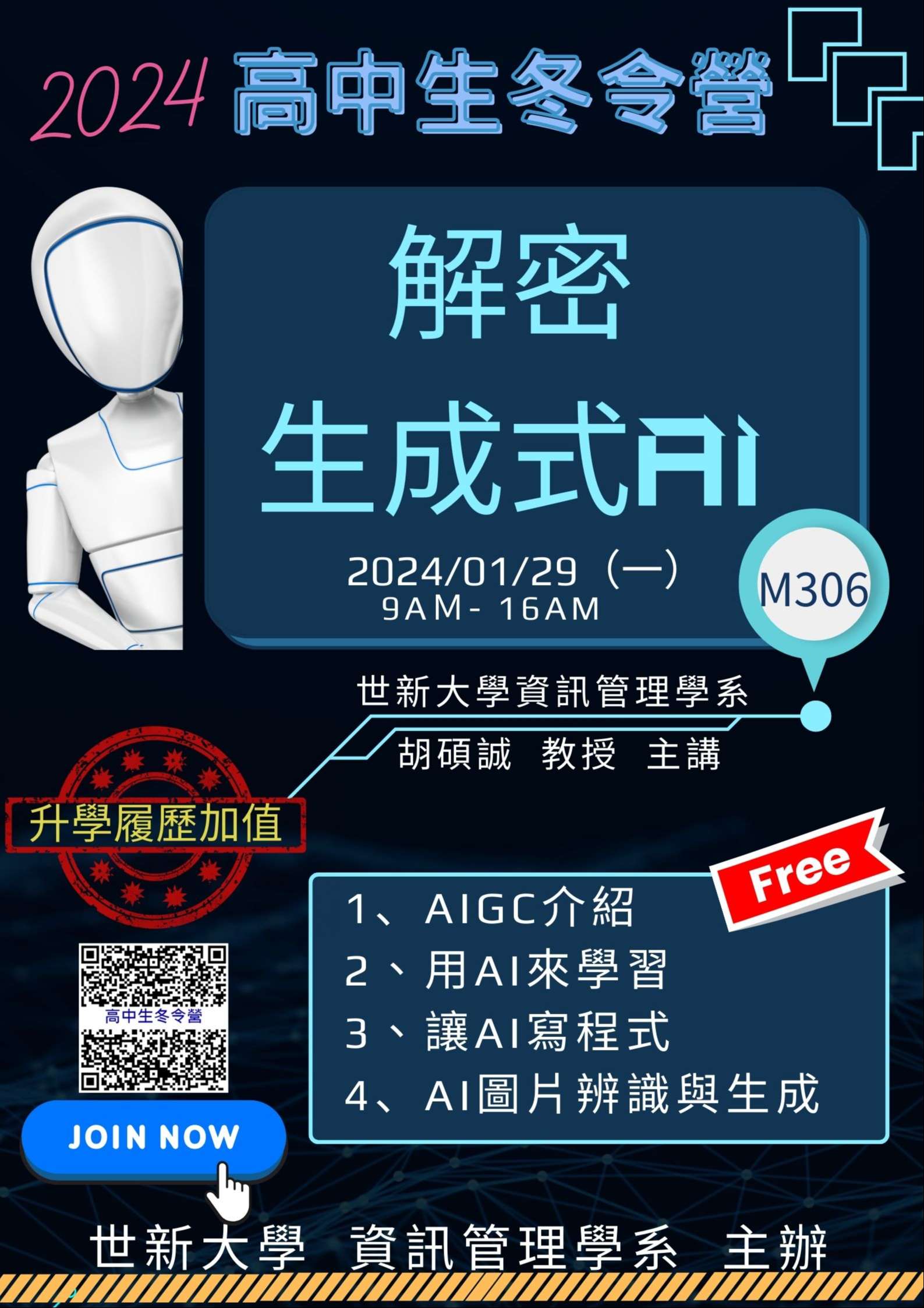 三、參與對象:有興趣之高中生(活動完全免費)。