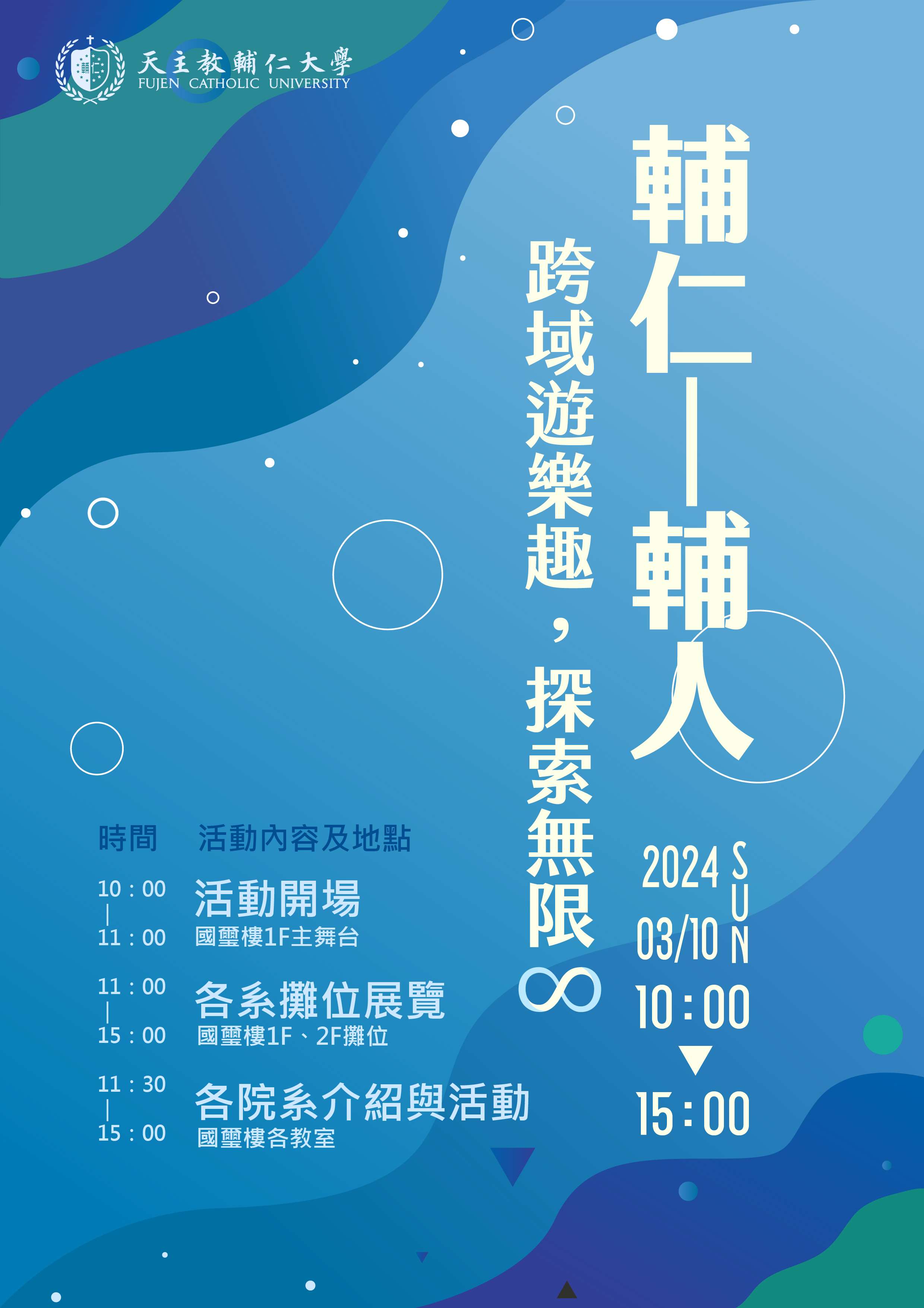 一、113年3月10日( 星期日)上午10:00至下午15:00,輔仁 大學國璽樓1、2樓。
