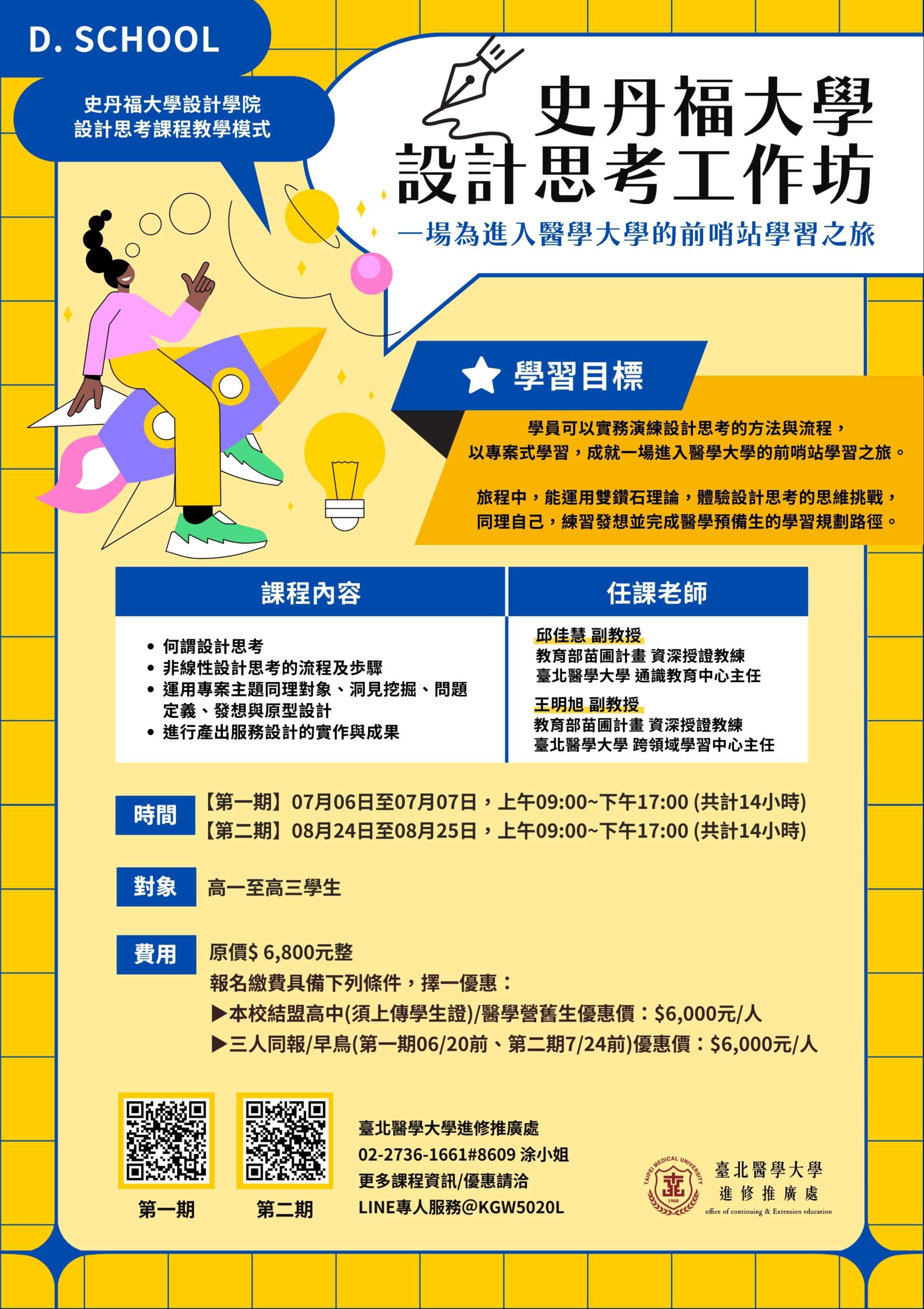 二、參加對象:每梯次招收40名高中生,額滿截止報名,
