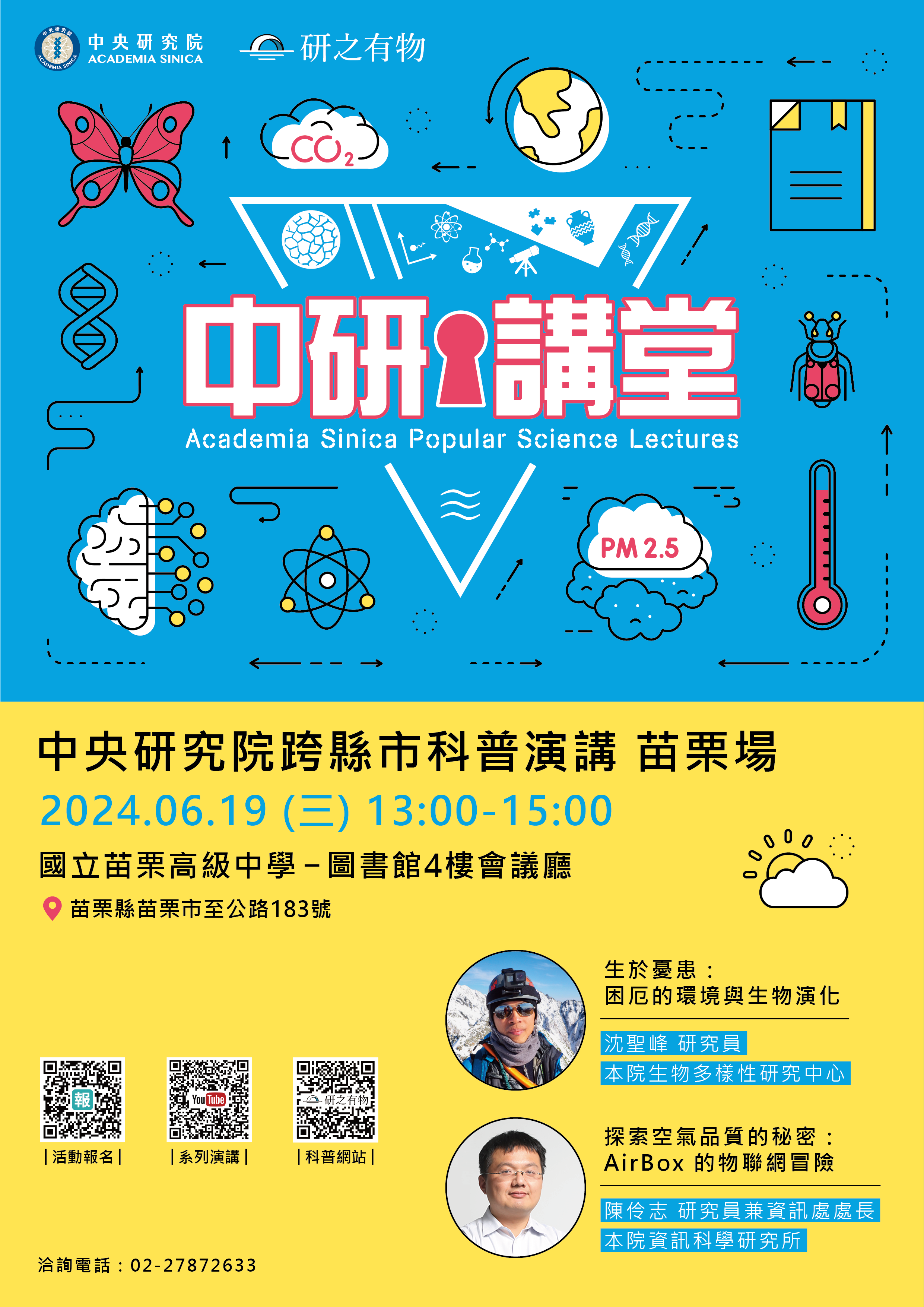 1、場次一:沈聖峰研究員(本院生物多樣性研究中心);講題「生於憂患:困厄的環境與生物演化」。