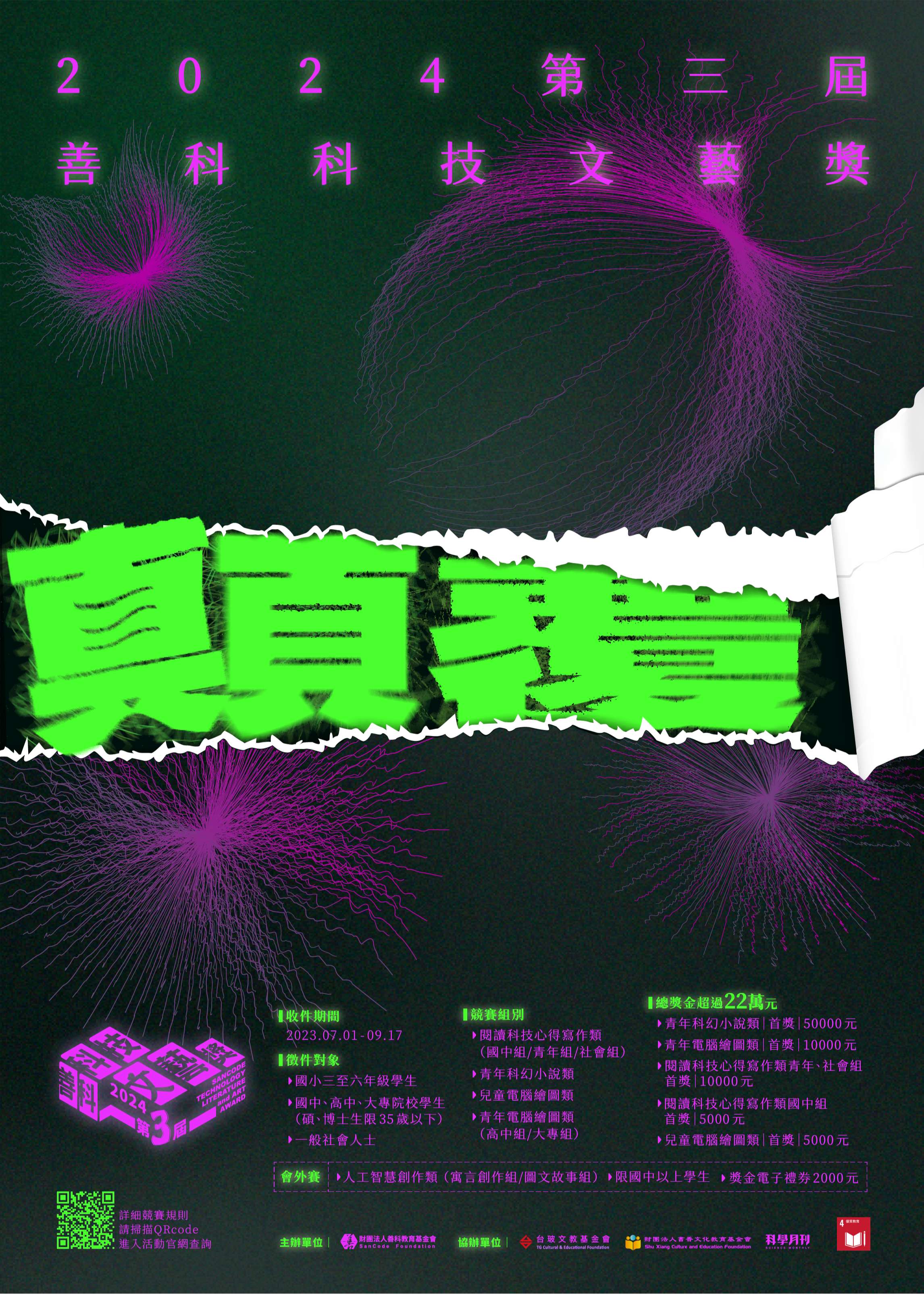 一、競賽融合文學與藝術領域「科文雙融」,2024年活動主題為「顛覆」,希望打破舊框架,在文學、藝術與科技之間找到最佳融合方式。