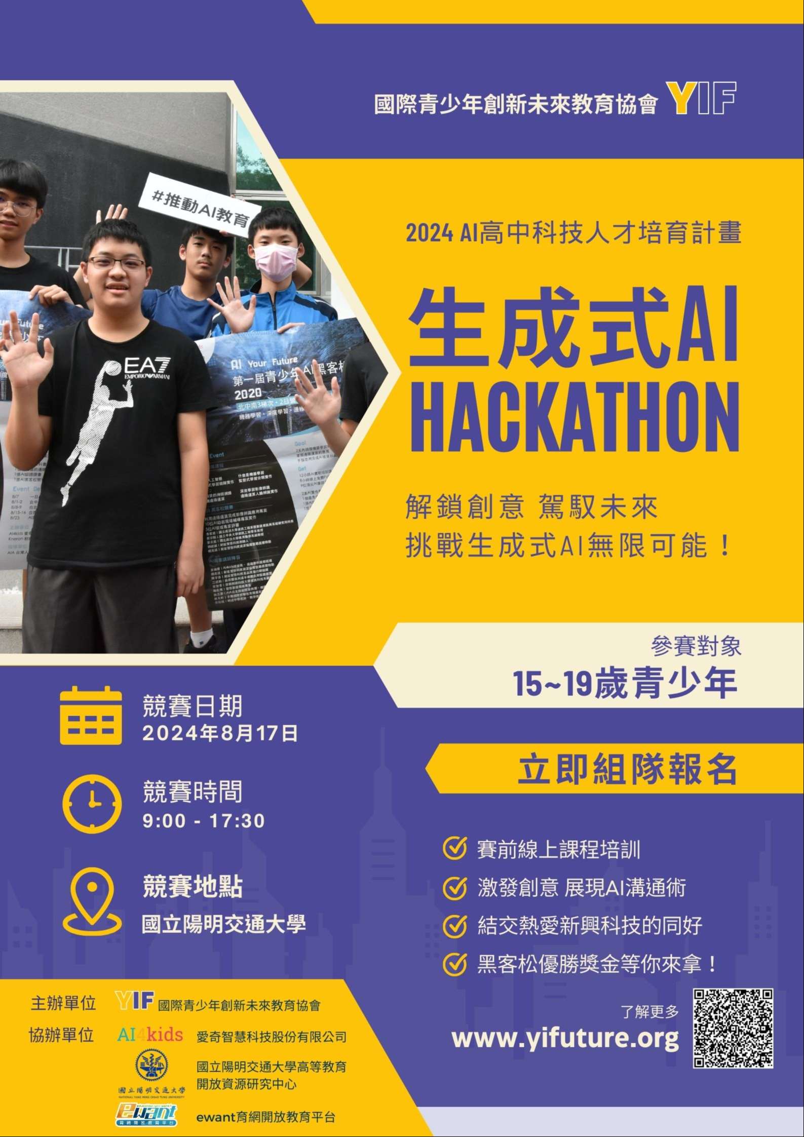 二、競賽報名:免費報名請至活動網頁(https://www.yifuture.org /technology-campus-ambassador/ai-hackathon)