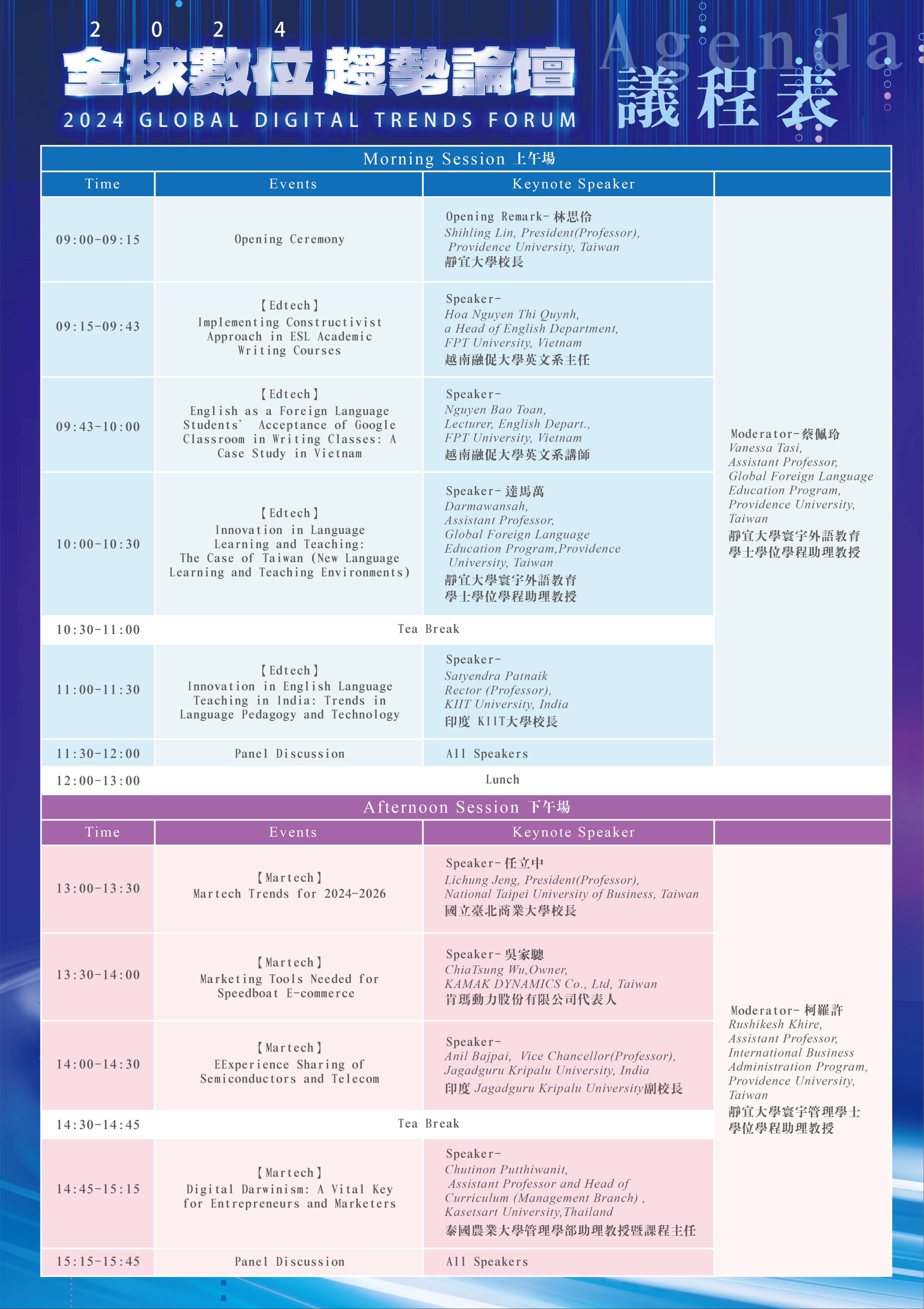 一、活動目的:邀請東南亞國家之專家學者至本校參與國際論壇,透過分享各國在教育科技和行銷科技領域的最新研究成果、實踐經驗以及創新技術,促進學術上的合作與交流。