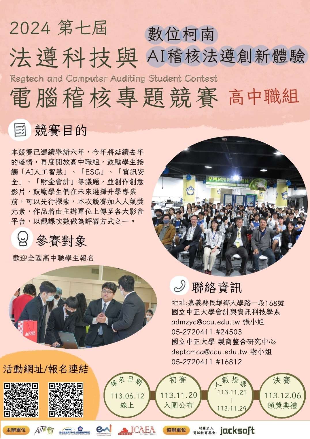 五、競賽時間:113年12月6日(五)於國立中正大學進行決賽。