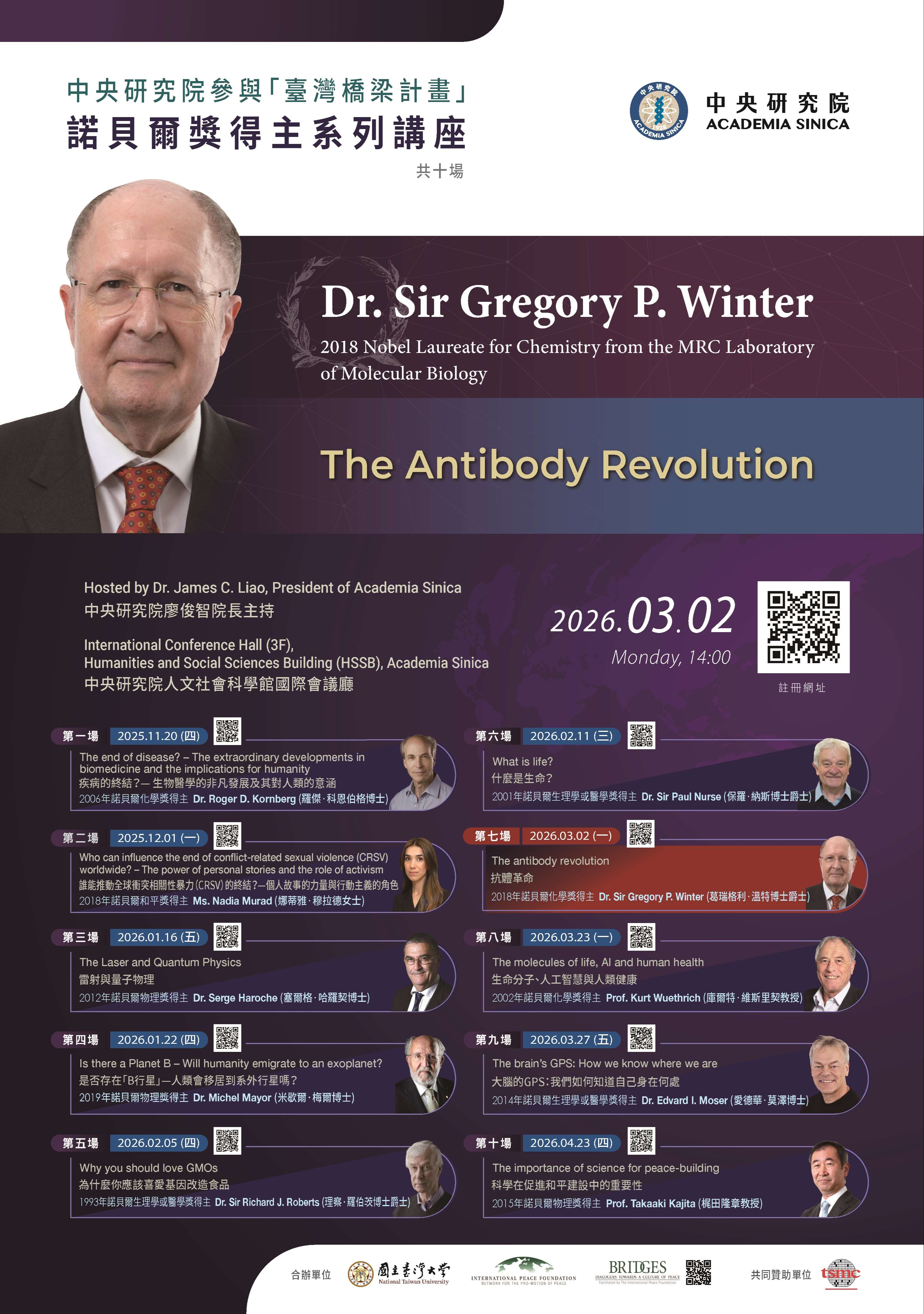 (四)講者:諾貝爾獎得主葛瑞格利.溫特(Gregory P. Winter)博士爵士。
