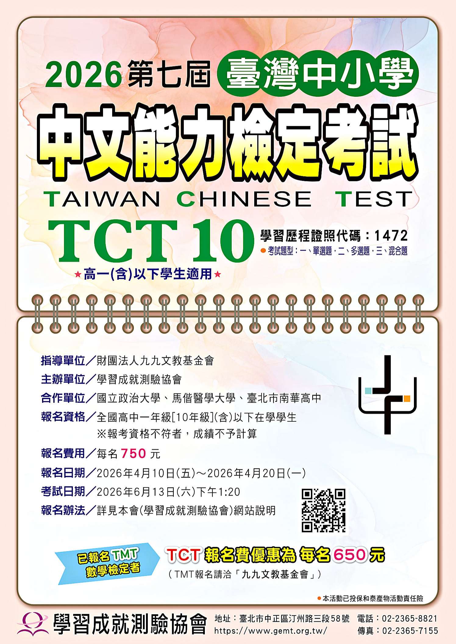 二、報名資格:TCT10-高中一年級[10年級](含)以下在學學 生