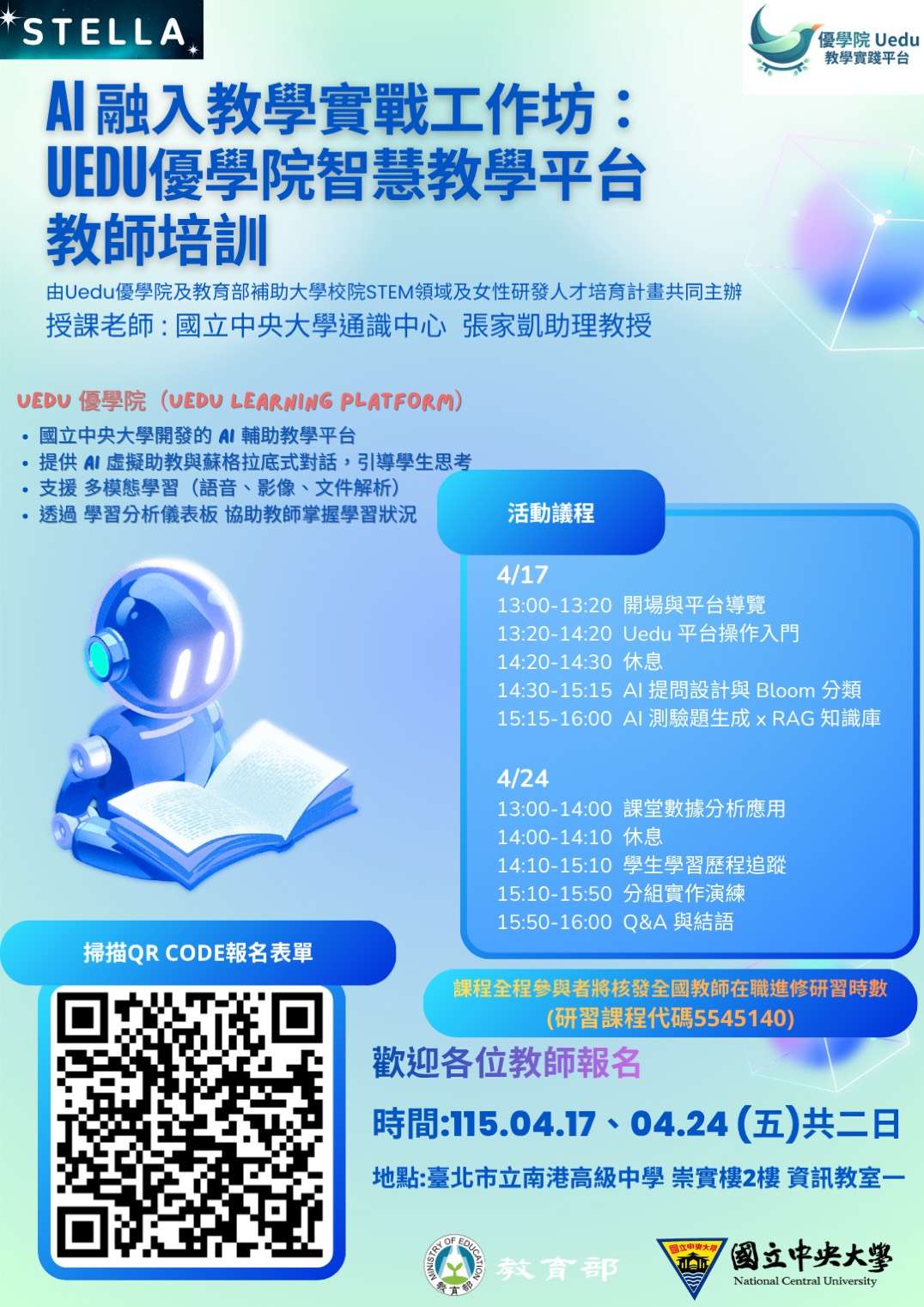 一、本活動旨在協助教師運用AI技術融入教學,提升教學效能與數位素養。