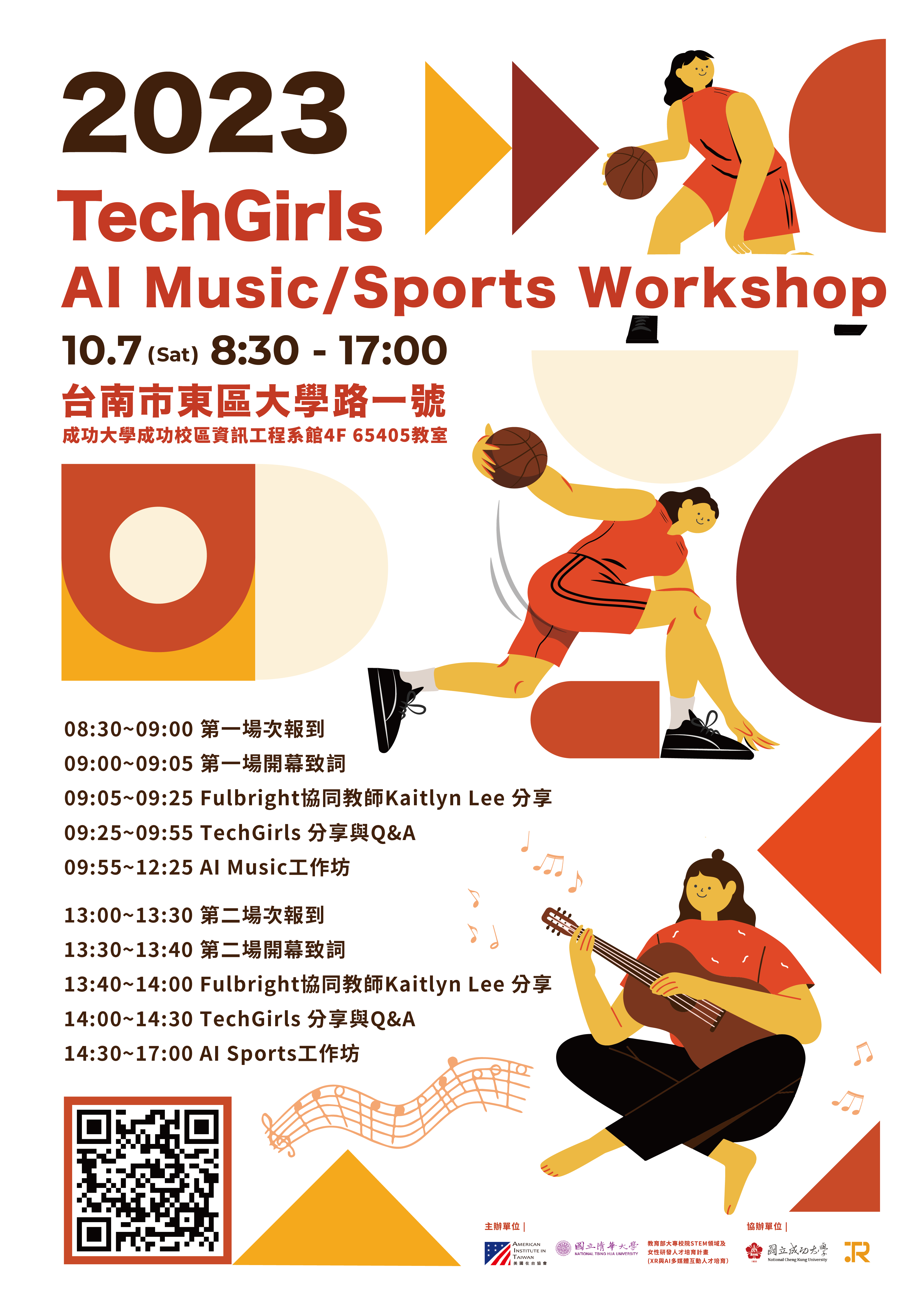 四、報名連結: https://forms.gle/H4aTY7ceJKSAenYs;報名時間自即日起至2023年10月4日(三)17時止,上午場 AI Music 錄取名額20人,下午場 AI Sports 錄取名額30人, 額滿為止。