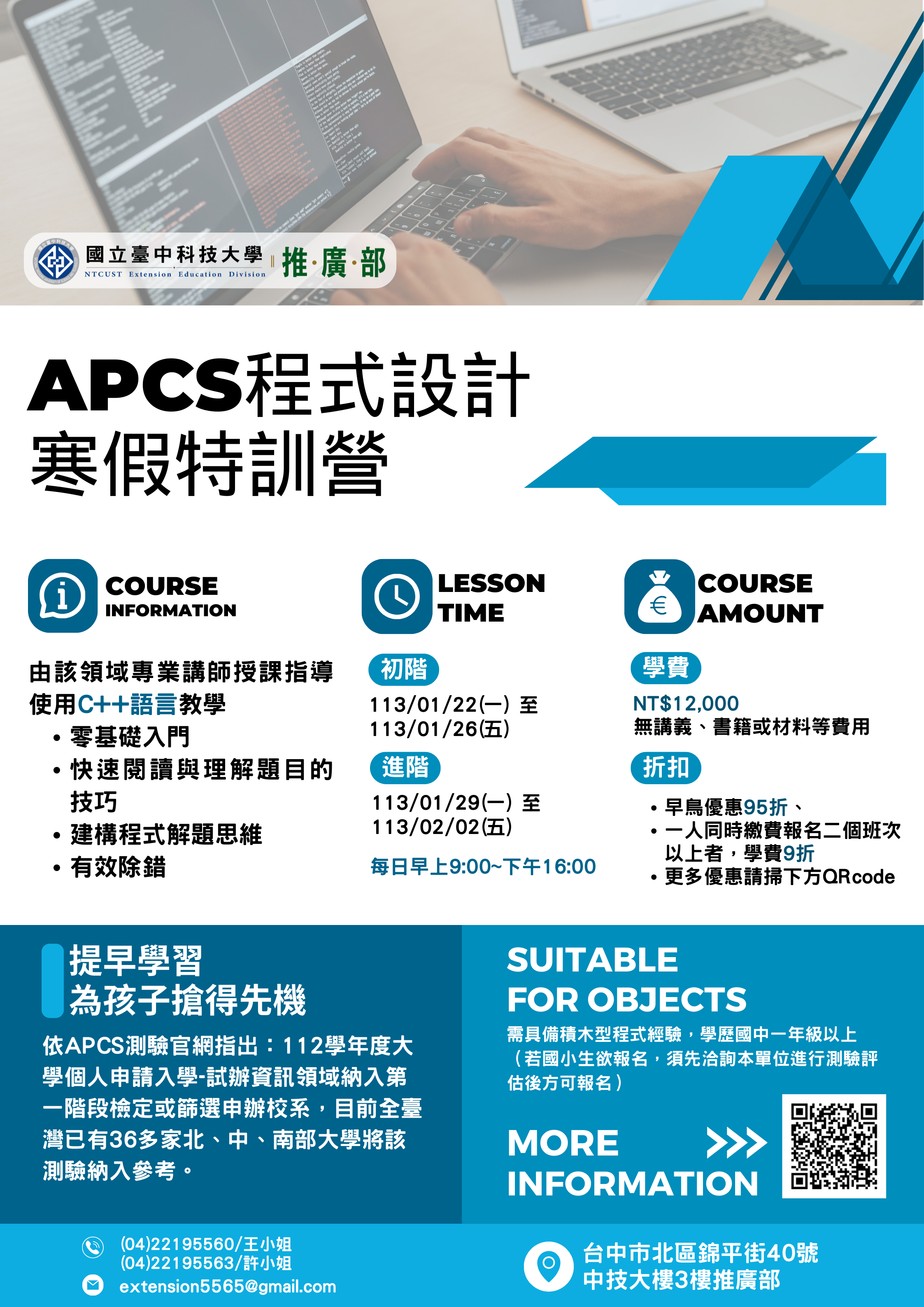 五、更多課程資訊請參閱附件招生海報,或至推廣部網站查詢:https://extension.nutc.edu.tw/Course#1。