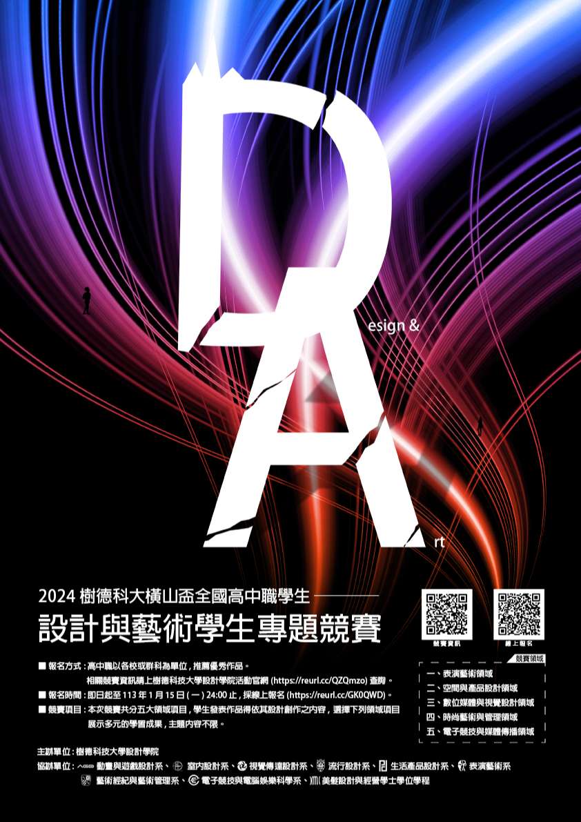 參賽報名及作品皆上傳平台,相關資訊請上樹德科技大學設計學院活動官網(https://reurl.cc/QZQmzo)查詢或掃描競賽海報之QRcode報名。