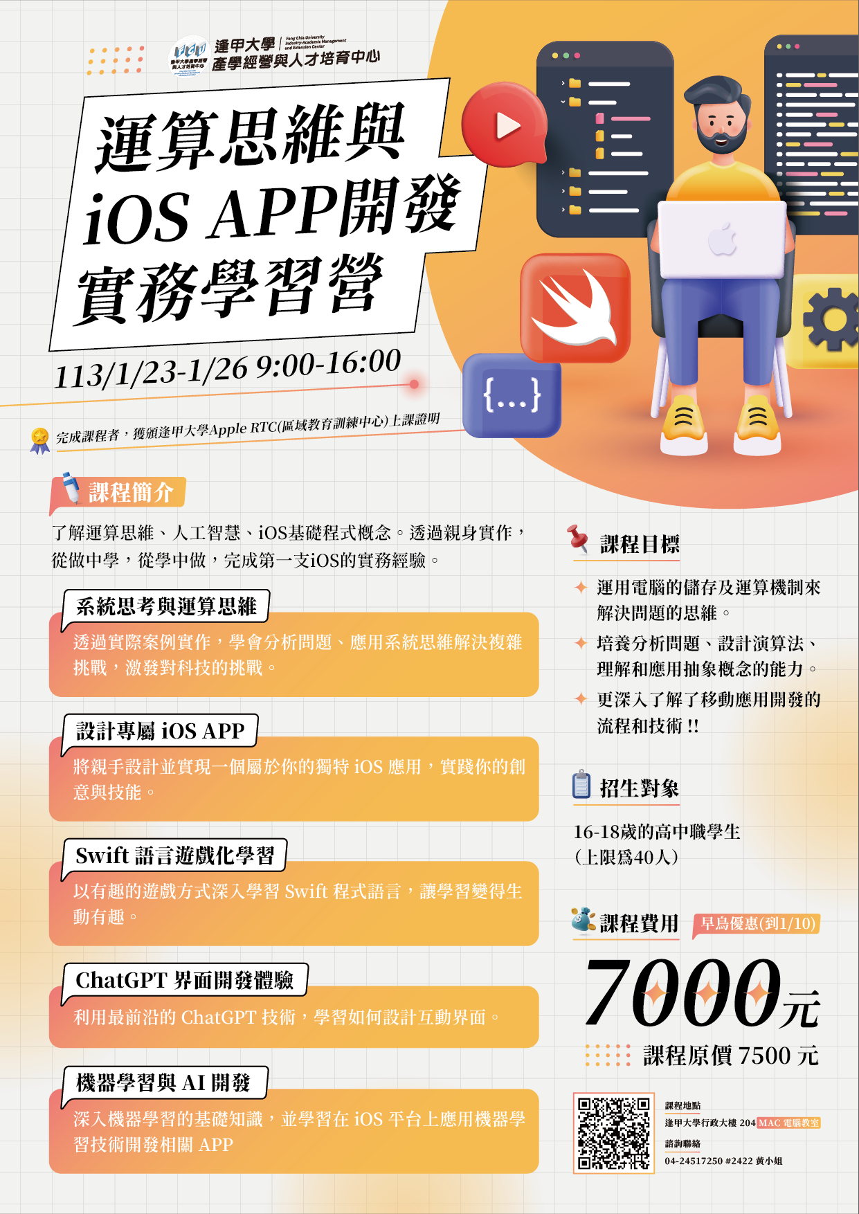 一、旨揭營隊活動主要為帶領高中端學生探索科技的世界:深入了解運算思維,人工智慧的奧秘,以及iOS開發的核心理念,激發學生對於科技的熱情並提升問題解決的能力。
