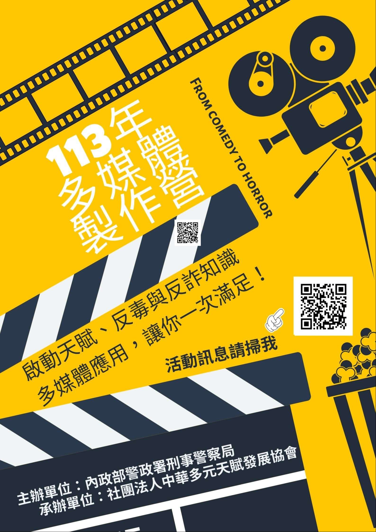 1、實體課程:依照報名填單順序錄取前25名及備取3名;課堂中實作直播表演技巧、攝影運鏡、多媒體剪輯、 網路社群經營互動,並透過專業講師講解反毒識詐資訊、進行問答互動及老師個別輔導。
