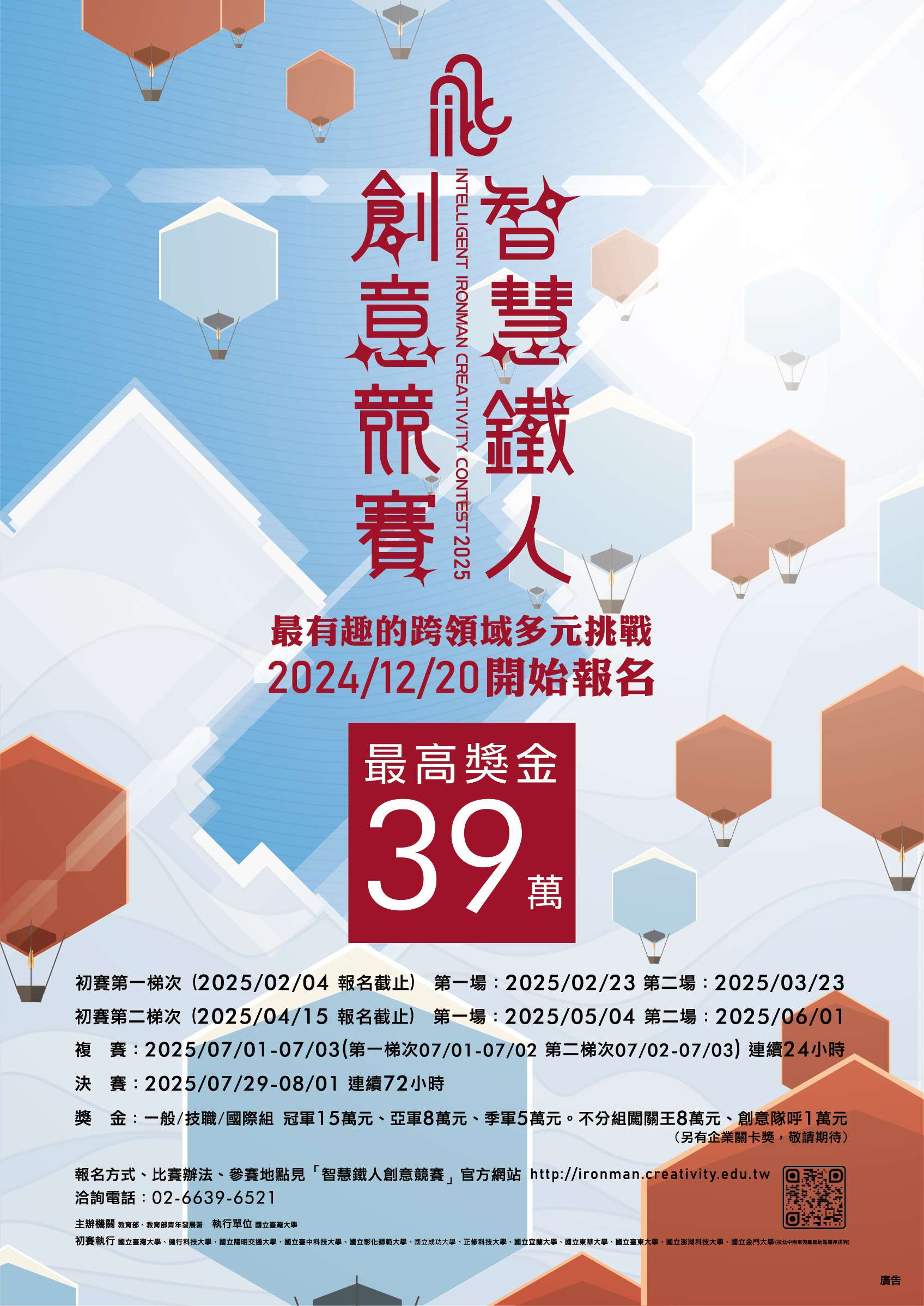 一、教育部自93年起辦理智慧鐵人創意競 賽,114年將邁入第22屆。