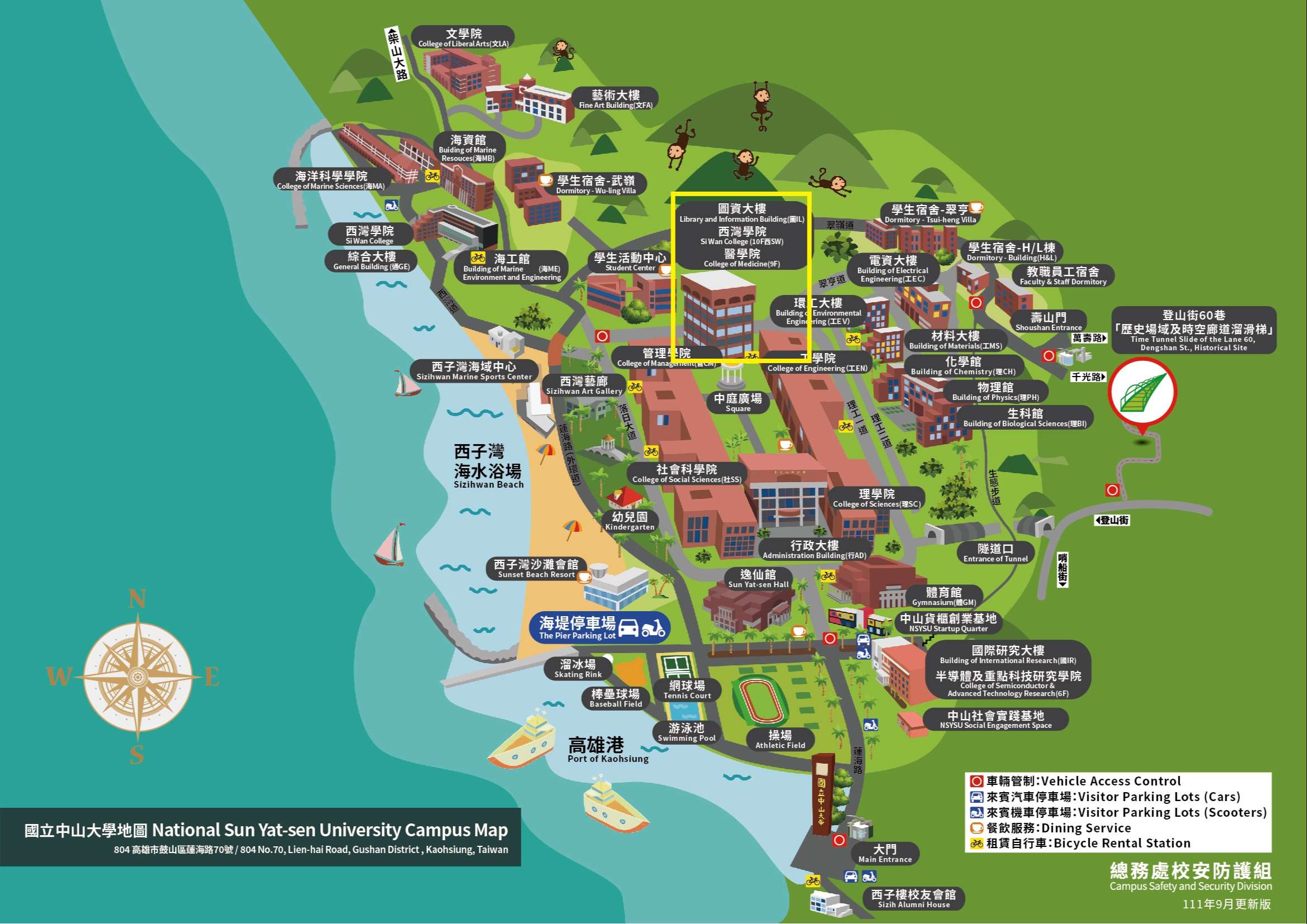 (三)交通方式:可搭乘高雄捷運至西子灣站1號出口,轉騎 YouBike或步行15分鐘至國立中山大學圖資大樓;或請參考其他交通方式(https://www.nsysu.edu.tw/p/4121000-4132.php?Lang=zh-tw)