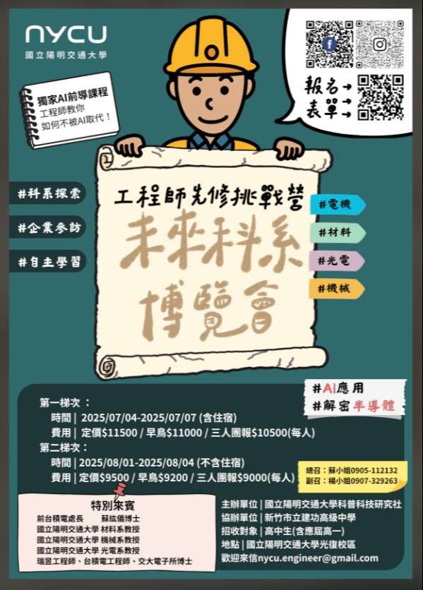 1、第一梯次(含住宿):114年7月4日至7月7日,共四天三夜。
