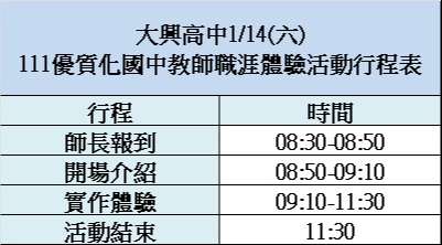 二、辦理時間:112年1月14日(六)08:30~11:30,共3小時。