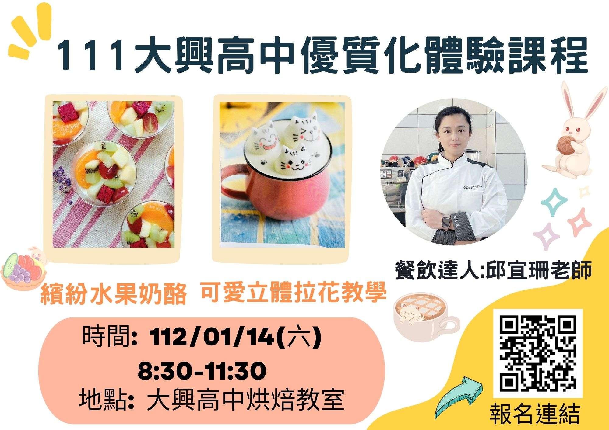 四、地點:上課場地:大興高中烘焙教室,桃園市大園區永興路 142號。