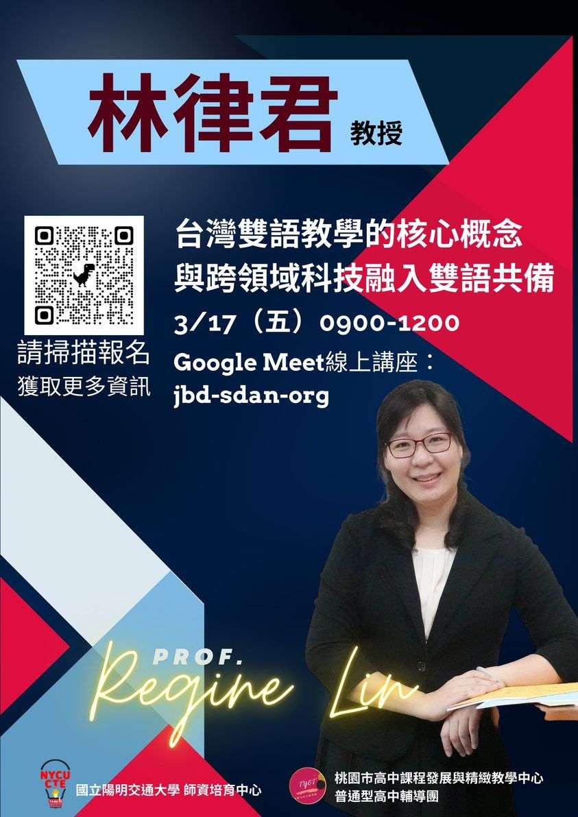 一、依據臺教師(三)字 第111260317N號函及師資培育大學辦理 地方教育輔導工作計畫書辦理。 二、基於向下扎根,期以學校為中心擴散至周邊教育體系,已 提提升教學品質並提供各領域、各科教師增能的機會,加 深對雙語教學的認知。 三、旨揭研習相關說明如下,請各校惠允參與人員以公假出 席。 四、參加對象:全國教師皆可上網報名。 五、講座時間:112年3月17日(五)9:00至12:00。 六、線上連結:Google Meet會議室號碼jbd-sdan-org。 七、報名方式:即日起至3月16日(四)截止,請至全國教師在職 進修網報名https://inservice.edu.tw,研習代碼: 3738684。 八、講座綱要: (一)臺灣雙語教學的核心概念:從WHY, WHAT, HOW 分享臺灣 國民教育與大學雙語教學的核心概念,包括有效課程設 計架構、教學策略與教學語言規劃,讓聽眾能夠了解雙 語教學的基本框架和原則。 (二)科技融入雙語教學:探討如何運用科技來促進雙語教學 的效果,包括在教學設計中運用簡單易上手的教與學的 數位工具輔助雙語教學。 (三)跨領域雙語共備的實踐與實例:介紹跨領域雙語共備的 實踐,包括跨領域教學設計、教學資源整合等,讓聽眾 了解如何在跨領域課程中實現雙語教學。 (四)問答環節:設置問答環節,讓聽眾能夠提出問題和分享 自己的觀點,進一步深入討論臺灣雙語教學的核心概念 和科技融入跨領域雙語共備的實踐。 九、如有其他事宜,請洽本校圖書館讀者服務組王彥翔組長, 電話(03)350-1778分機912。 十、檢附本案研習活動海報乙份。