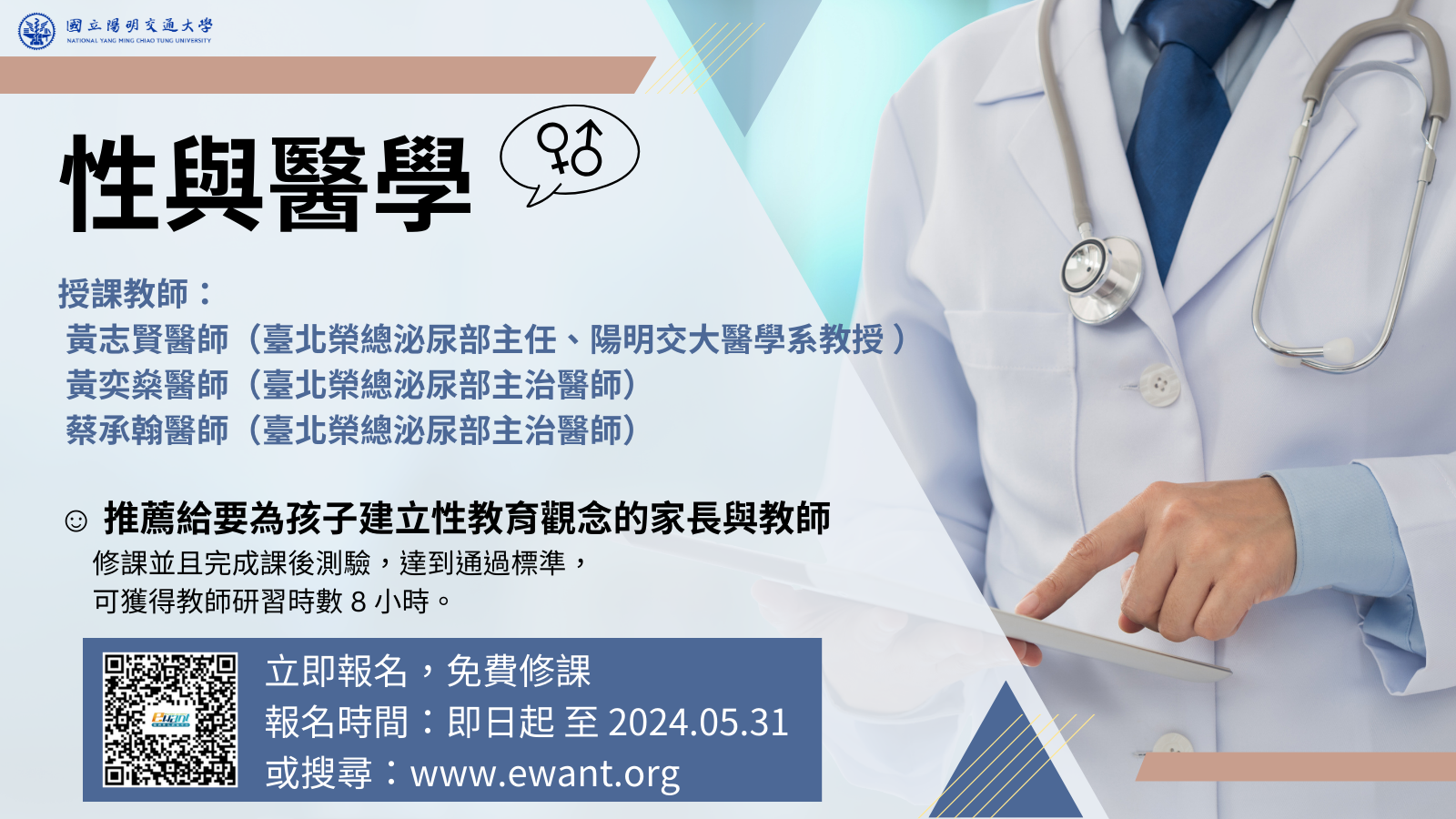 五、報名課程與課程資訊請見 ewant 育網開放教育平台了解: https://bit.ly/NYCU2024Urology。