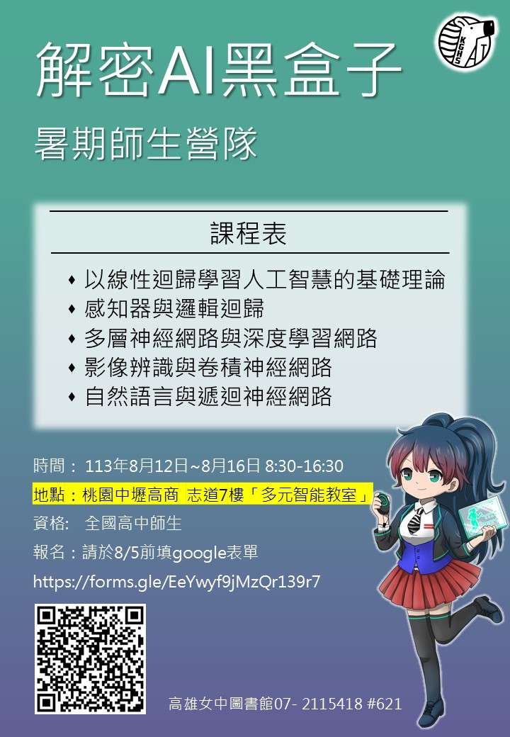 一、報名資格:高中師生,預計錄取40人,依報名先後順序錄取(113年8月5日寄發錄取通知),資訊如下: