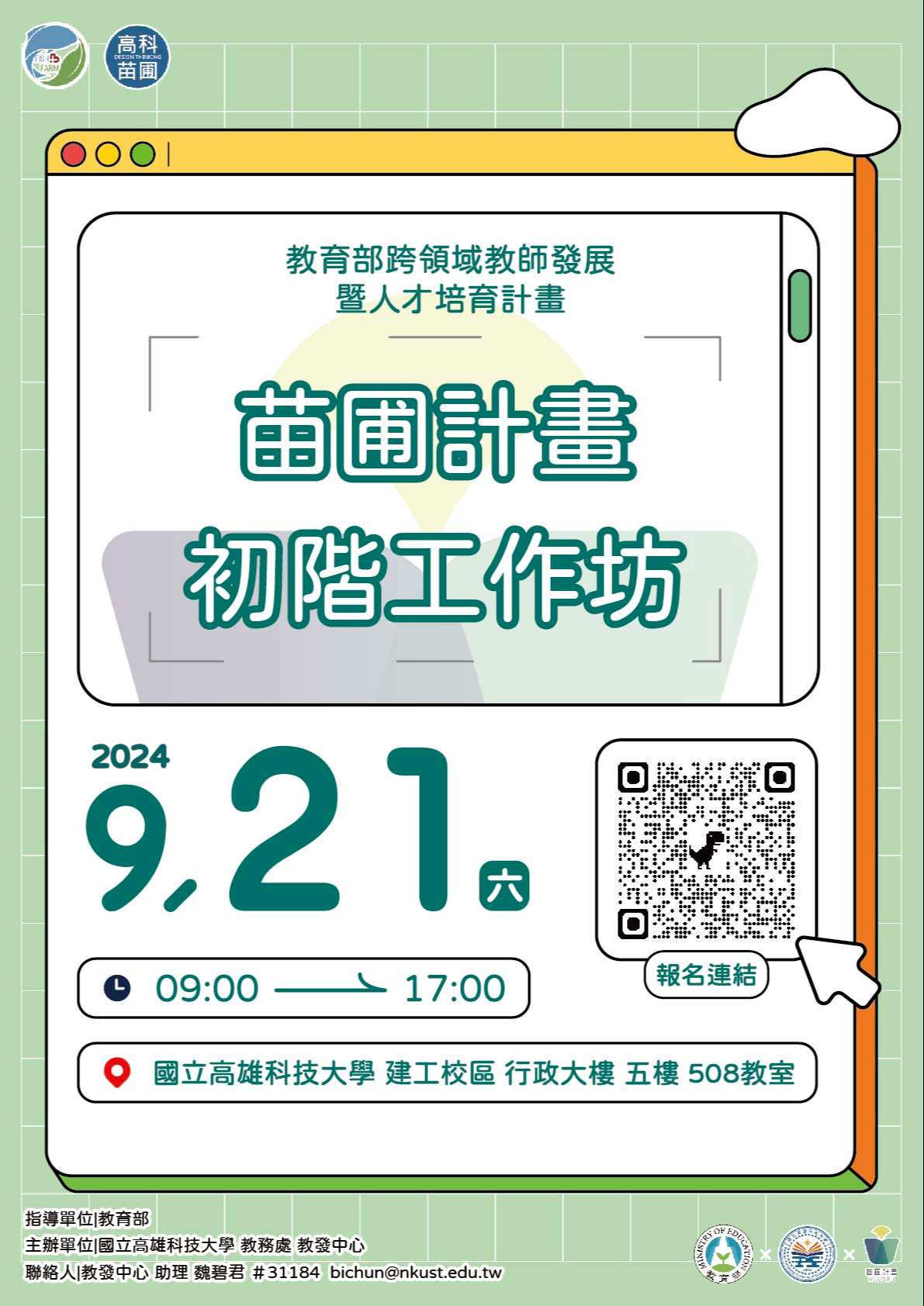 (一)活動時間:113年9月21日(星期六)9時至17時,請於當日8時30分至9時前往報到。