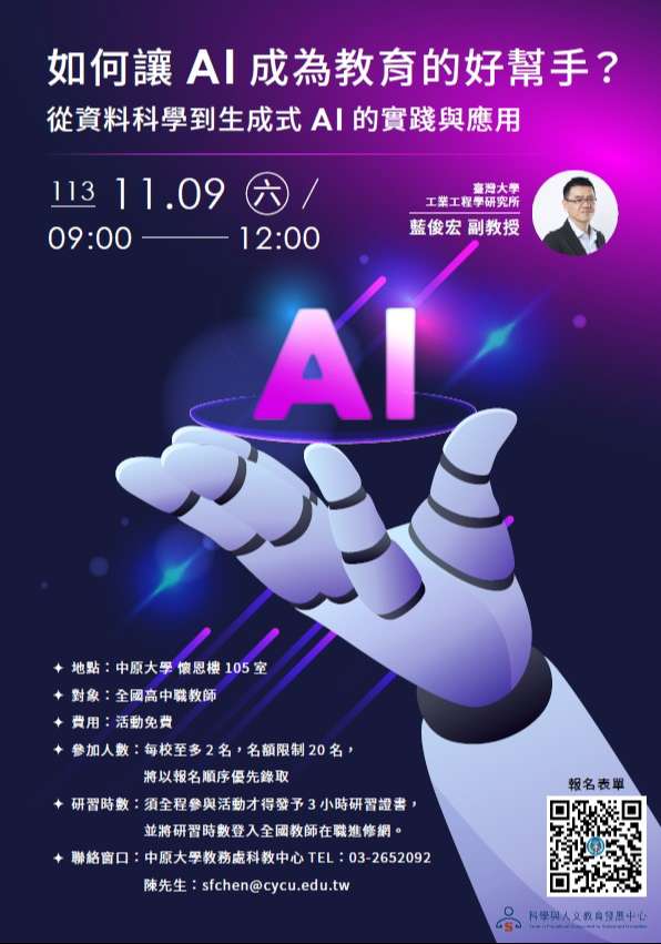 六、報名時間:自即日起至113年11月8日(星期五)中午12時止,額滿截止,報名成功者將以電子郵件通知。