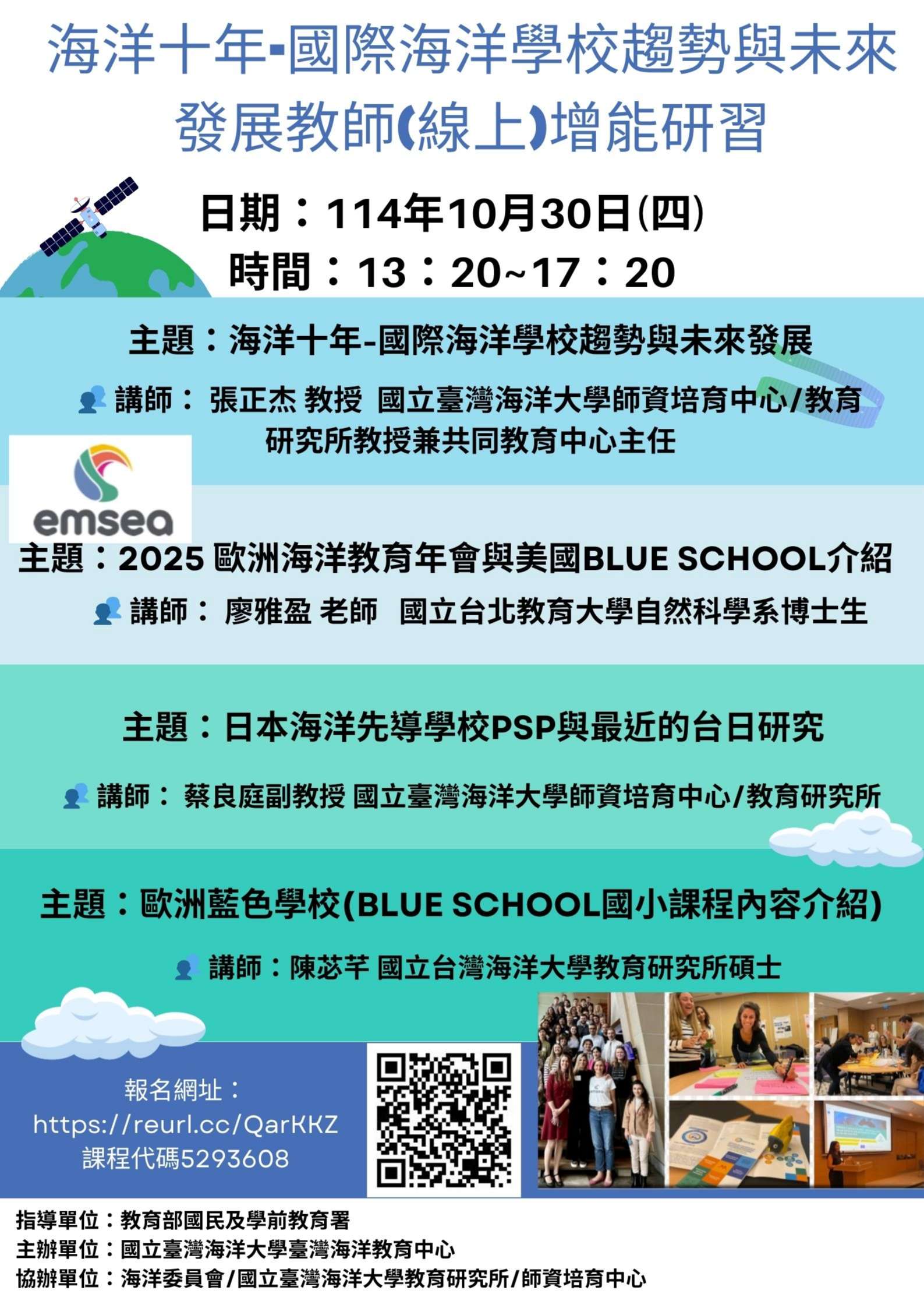 「海洋十年-國際海洋學校趨 勢與未來發展教師增能研習」,鼓勵教師踴躍報名參與