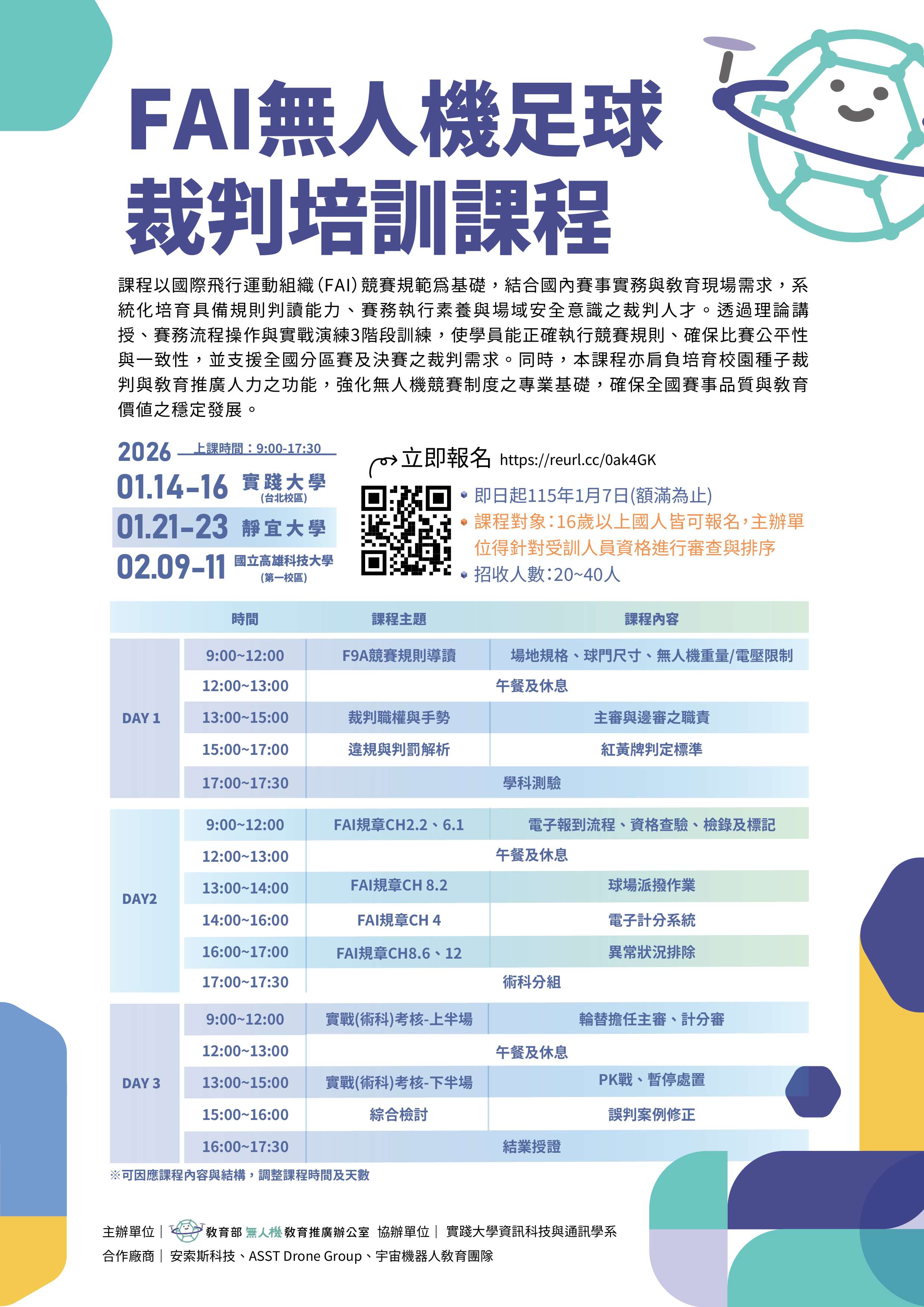 完成培訓之學員有義務擔任2026年北、中、南分區競賽之裁判至少2場(除學員本人所在地以外之區域)。