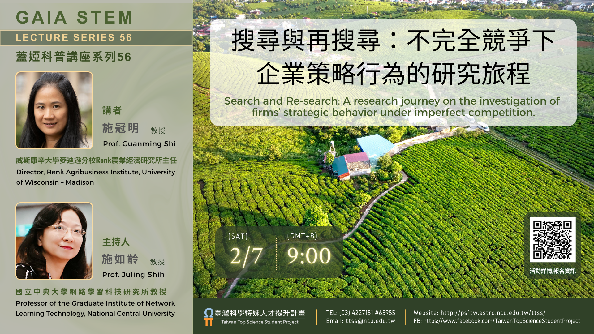 (一)講者:施冠明教授(威斯康辛大學麥迪遜分校Renk農業 經濟研究所主任)。