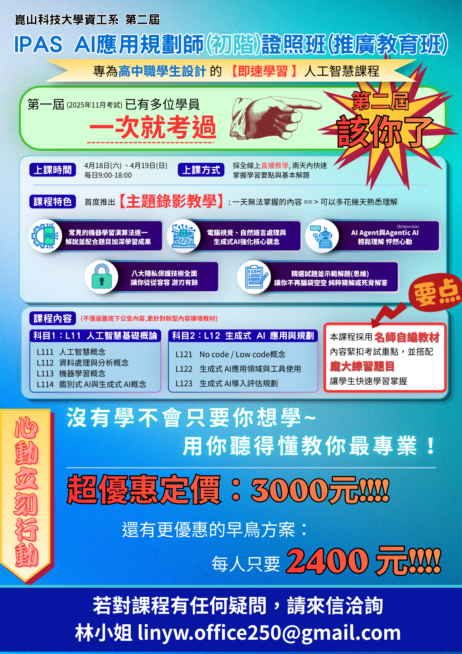 2、早鳥優惠(至115年4月13日止):2,400元。