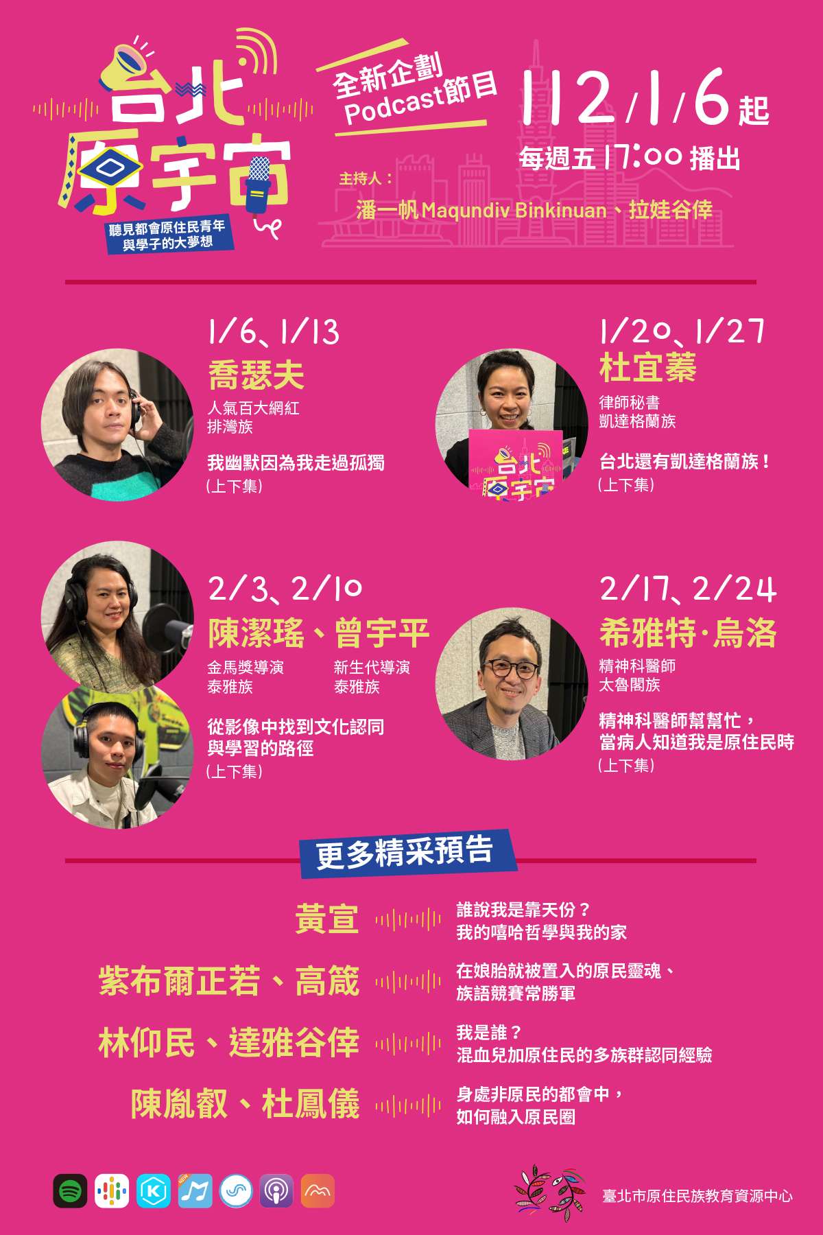 「Podcast節目-台北原宇宙」播出時間及日期如下: