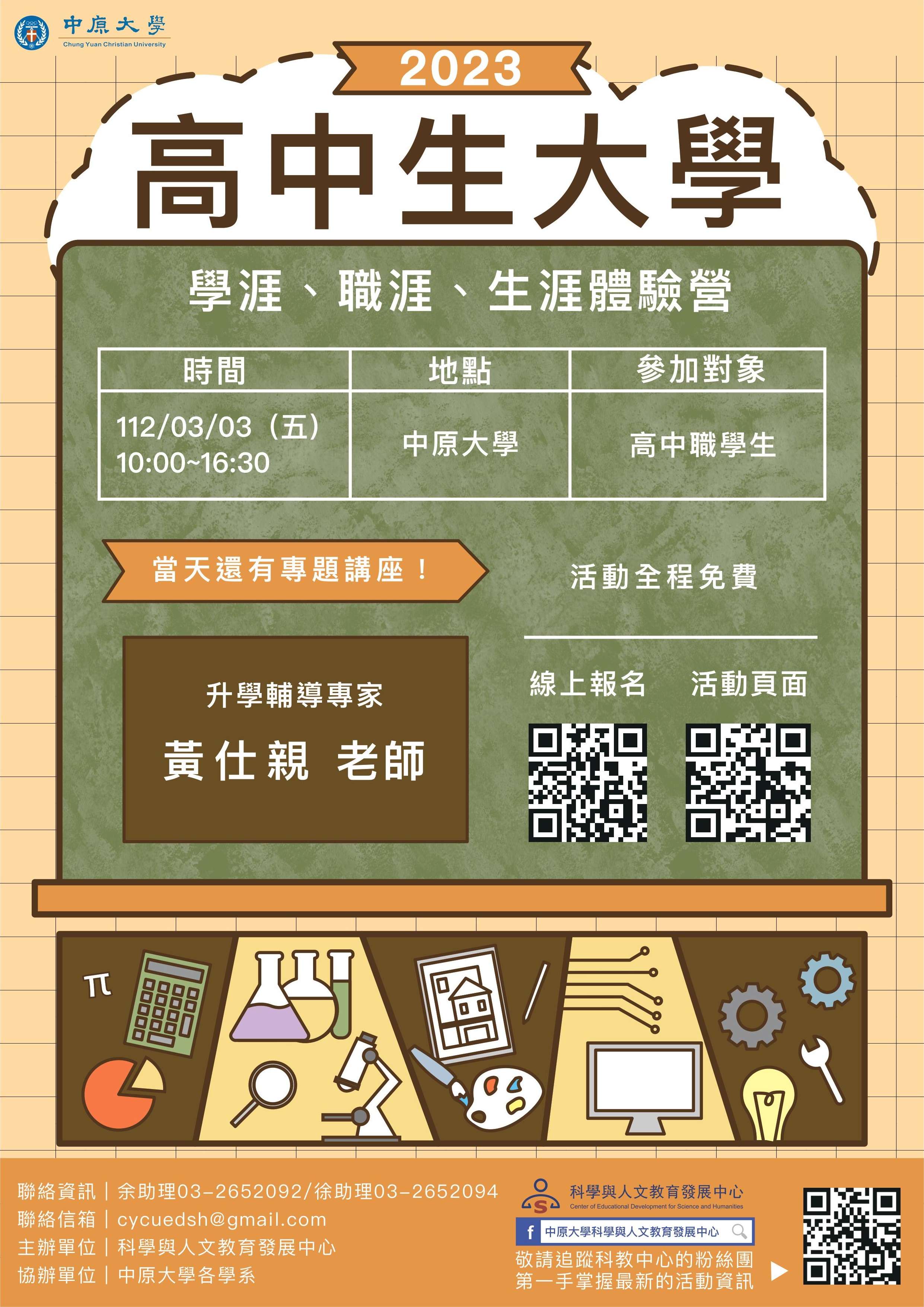 (一)活動主題:2023高中生大學學系學涯、職涯、生涯體驗營。