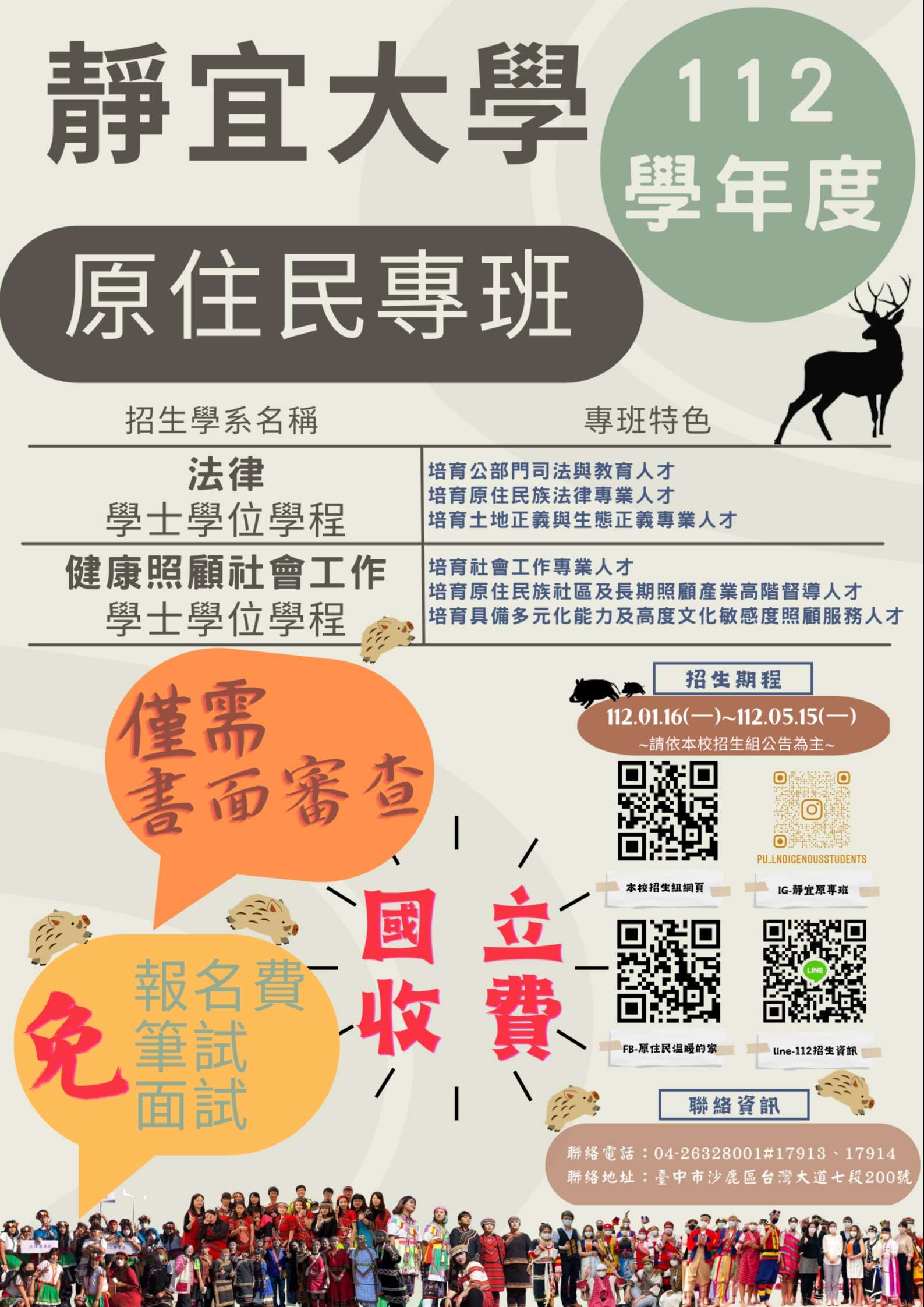 三、檢附「靜宜大學112學年度原住民專班」考試相關資料、招生海報、到校招生申請表。