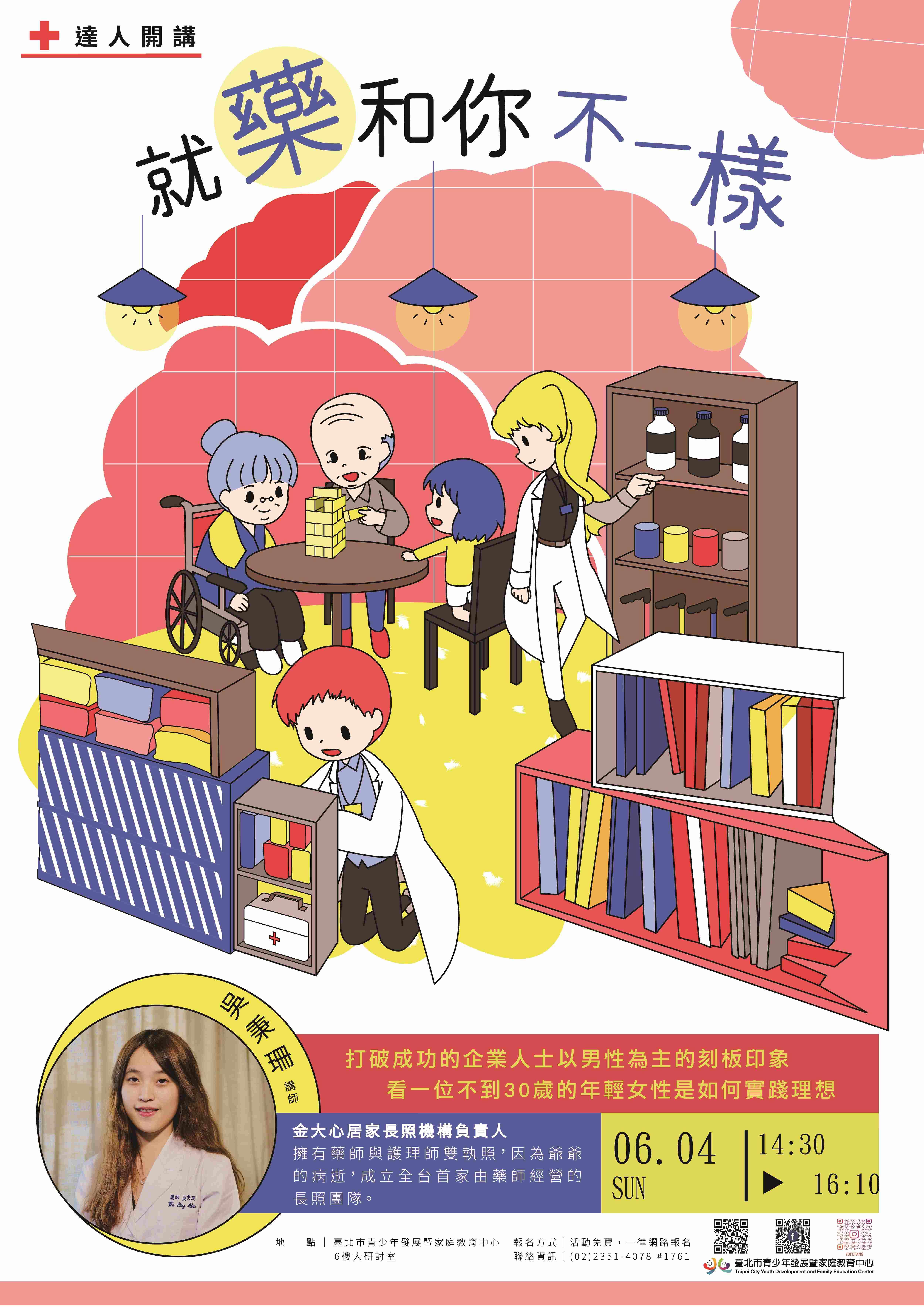 一、經由講師職涯經驗分享,讓年輕學子認識各行各業,藉以 了解自身興趣及性向,進而找到未來的道路與建立自我價 值;金大心居家長照機構負責人吳秉珊老師以個人經驗出 發,與青年學子分享她成立全臺首家由藥師經營長照團隊 的心路歷程,以及過程中的體驗。