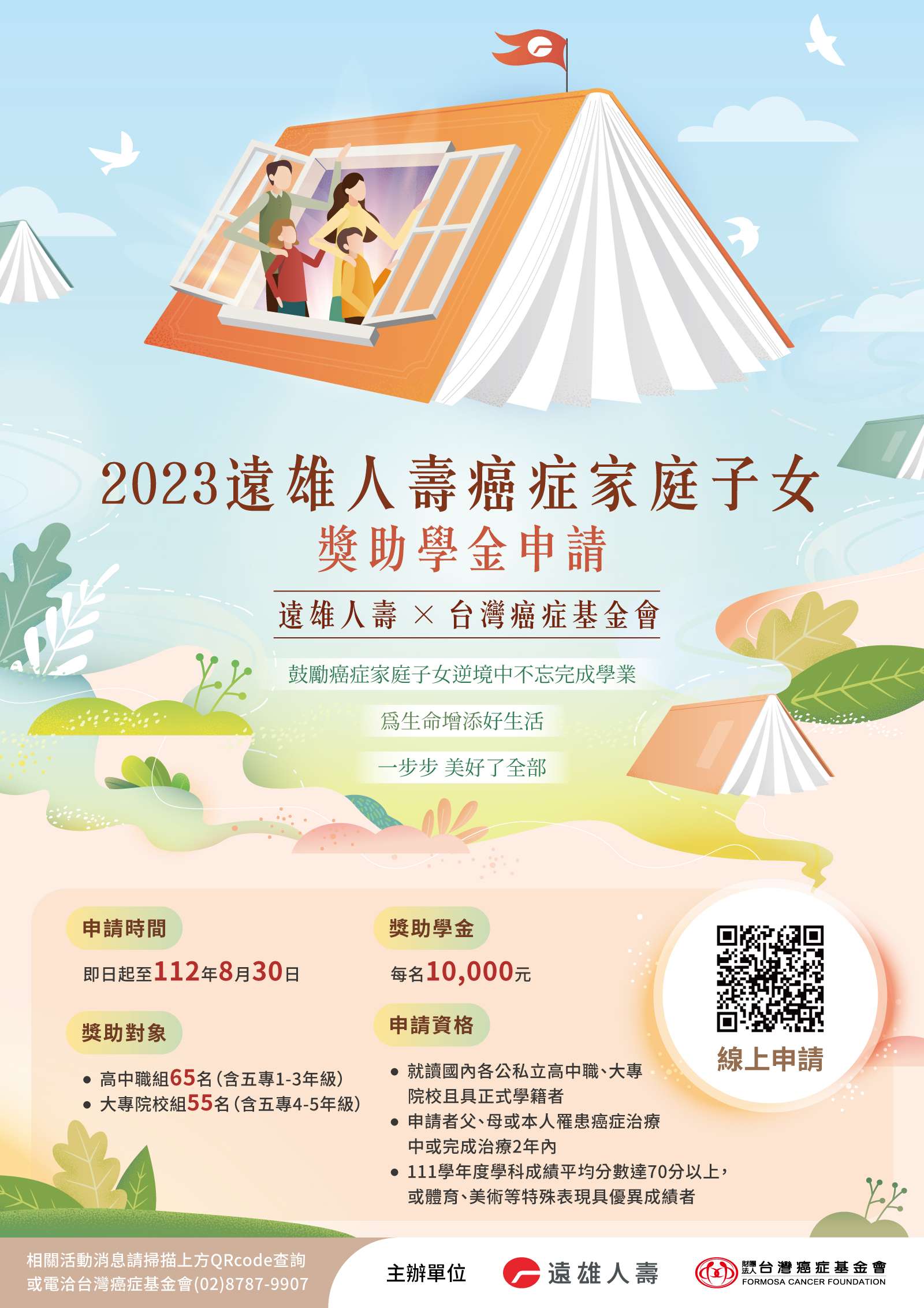 五、檢附「2023台灣癌症基金會x遠雄人壽-癌症家庭子女獎助學金」DM。