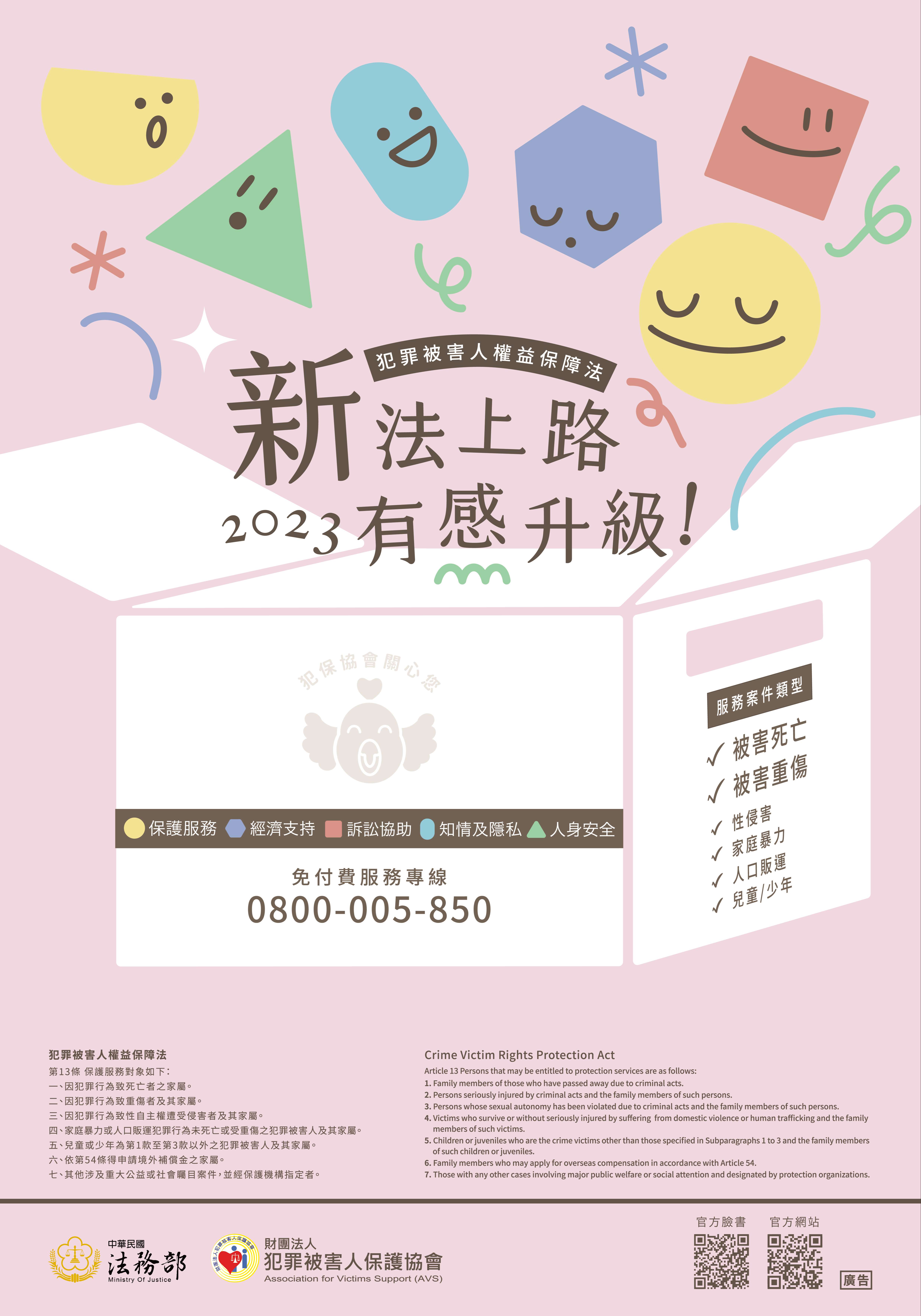 法務部檢送犯罪被害人權益保障法宣導之文宣刊物及 影片等素材及電子檔下載連結: