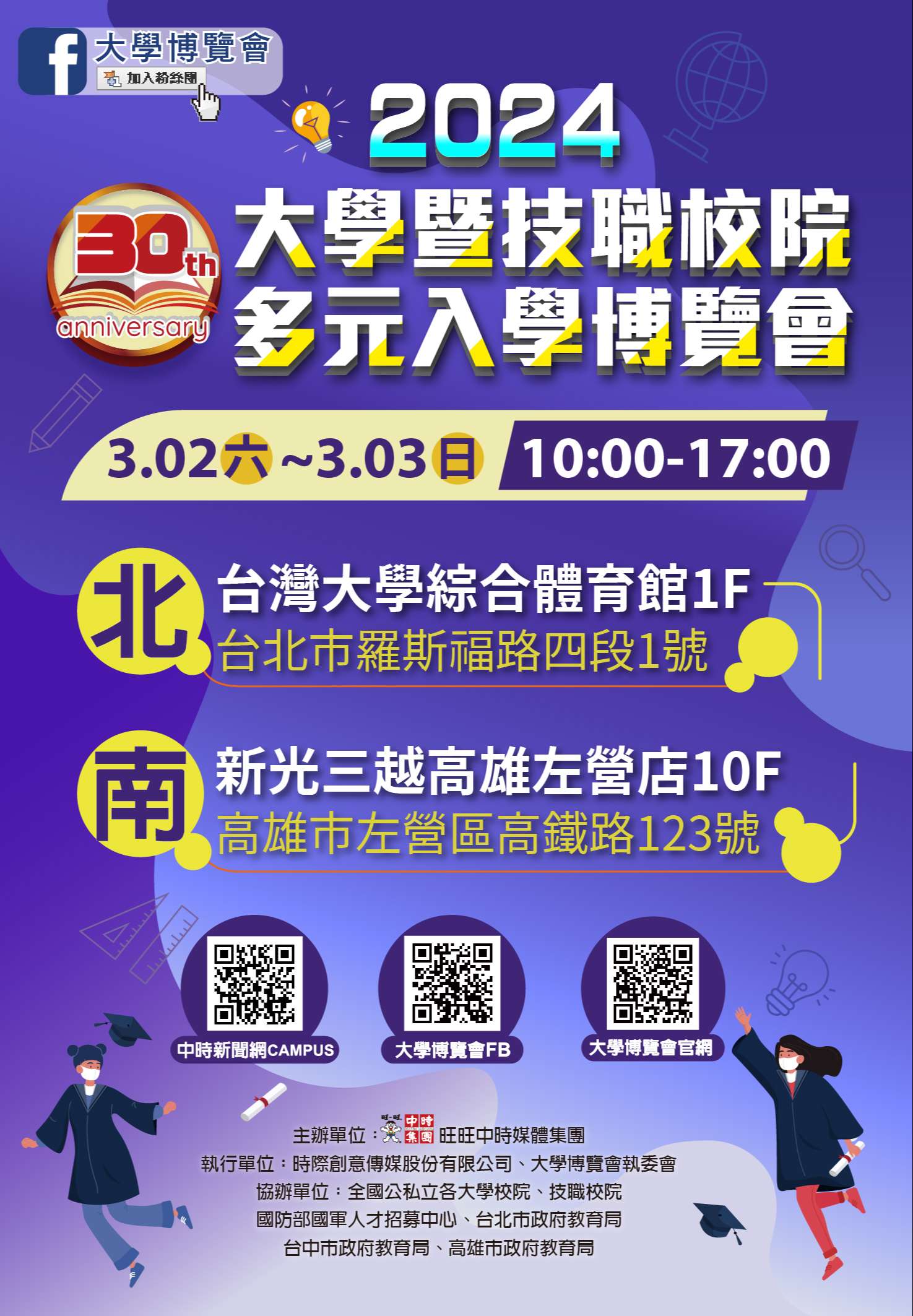 二、旨揭活動實體展覽訂於113年3月2日至3日假國立臺灣大學 綜合體育館1樓舉行,請轉知教師、學生及家長參考。