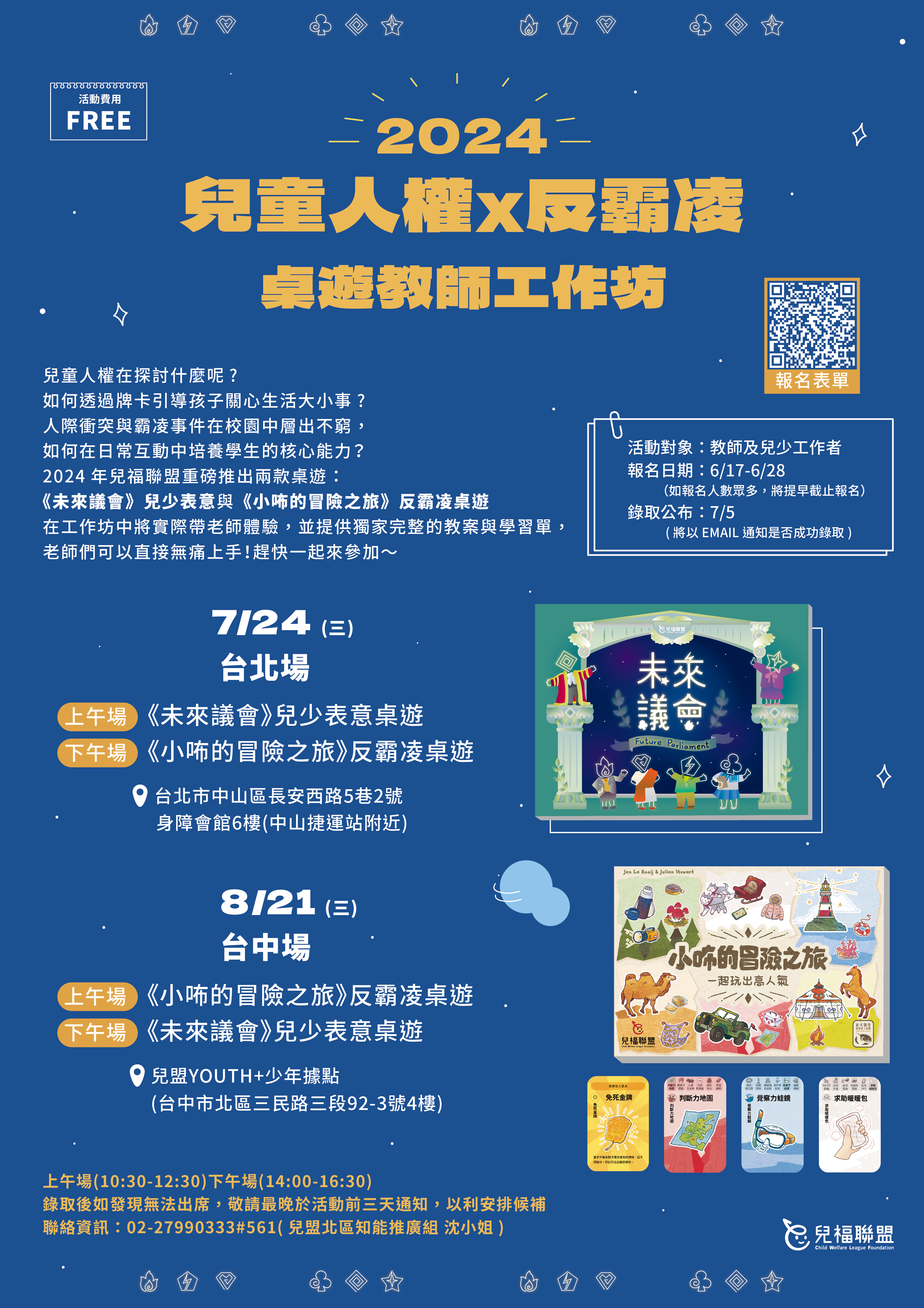 「2024兒童人權X反霸凌桌遊教師工作坊」課程,鼓勵教職人員進修研習: