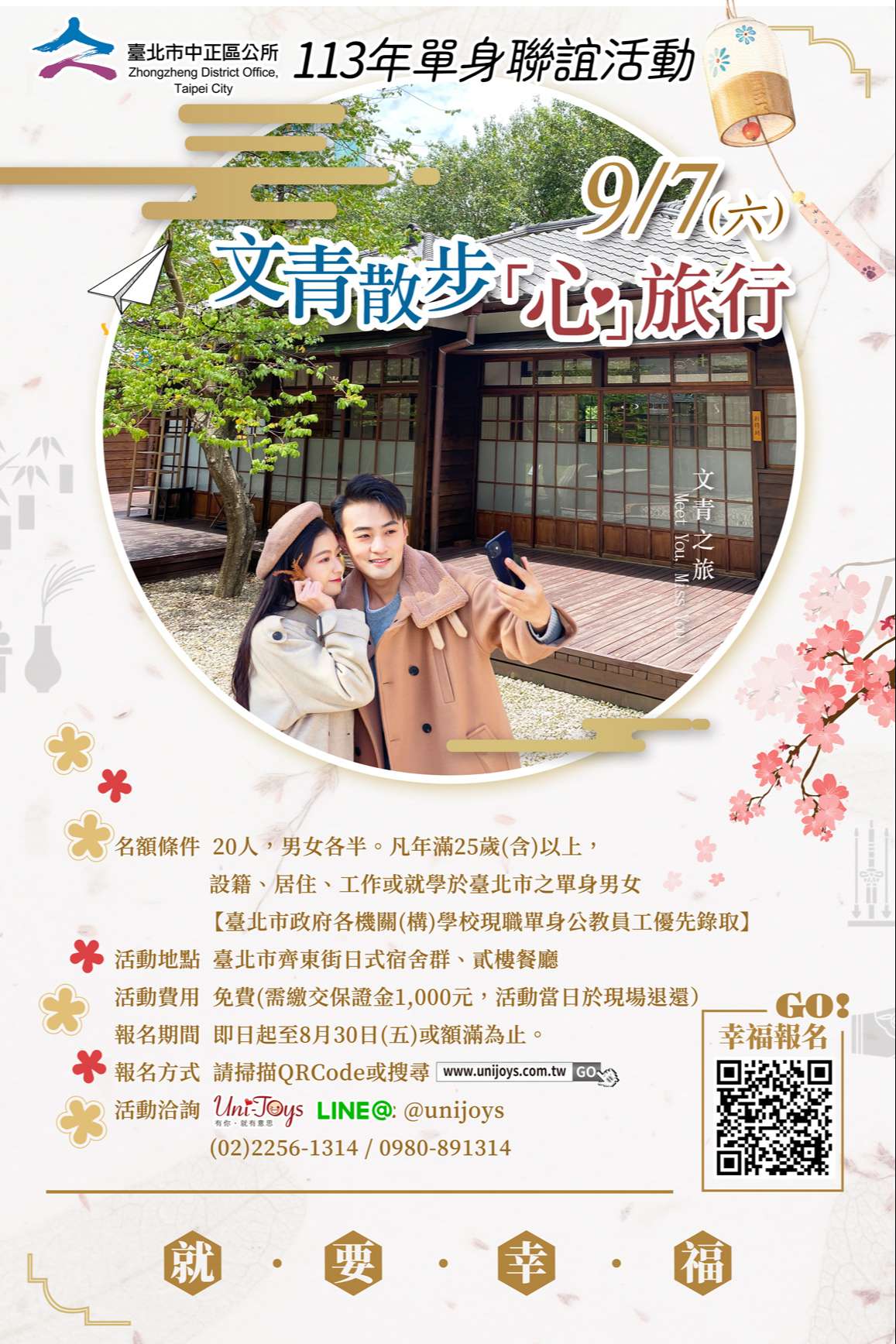 臺北市中正區公所辦理113年度「文青散步心旅行」單身聯誼活動。