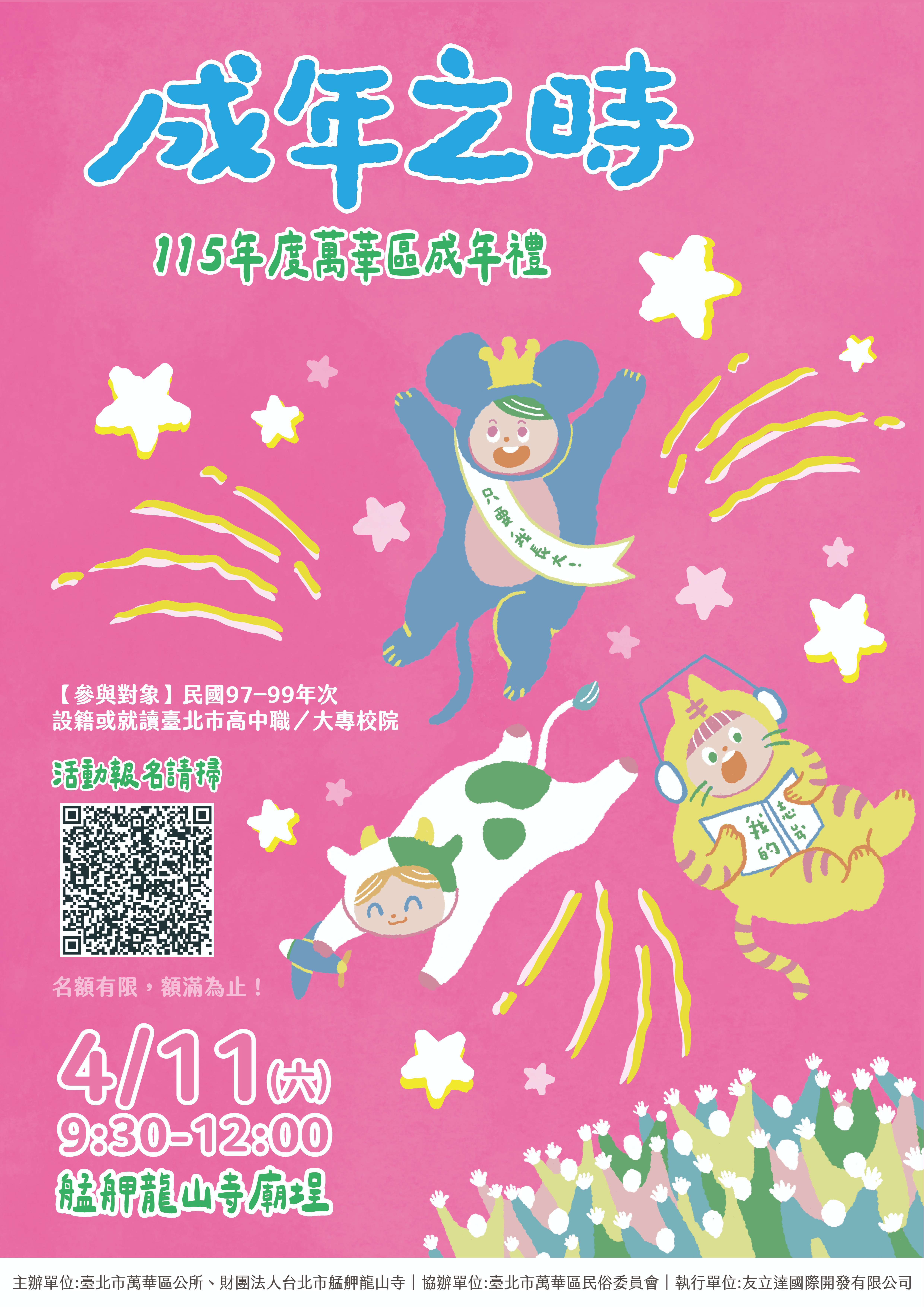 1.時間:4月11日(六)9:30~12:00 艋舺龍山寺廟埕
